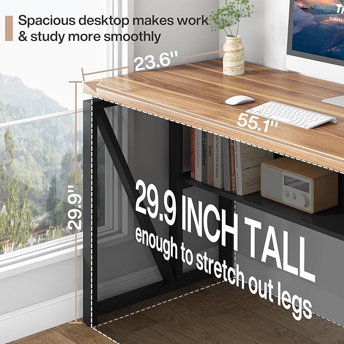 • 【Easily Hide to Keep Tidy】The storage rack with back under the table provides sufficient storage space for your books, power strips, storage boxes; while two drawers file cabinet keeps office supplies hide and neat
