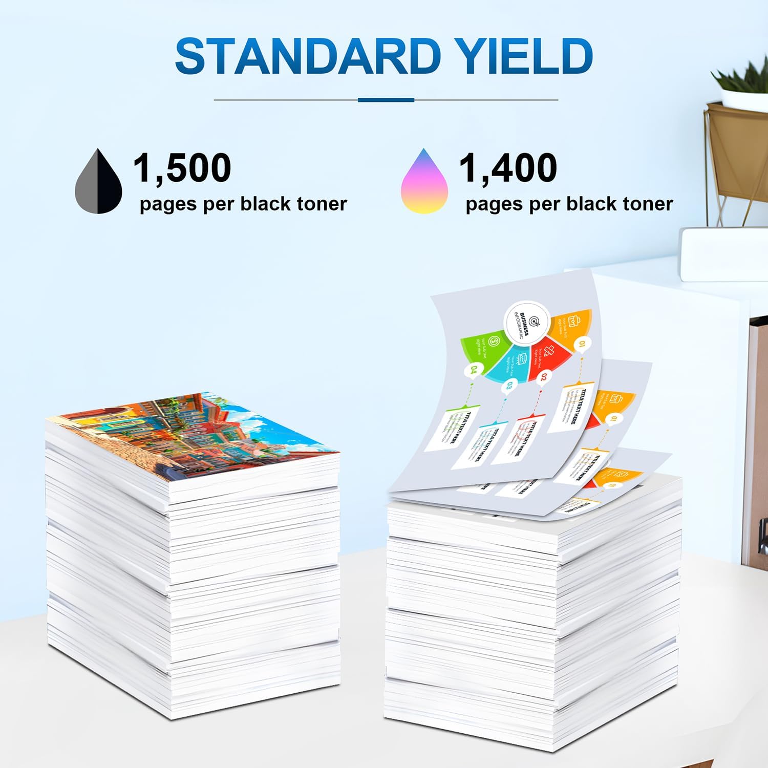 • Expected Page Yield: Up to 1,500 pages per 201A black CF400A toner cartridge, and 1,400 pages per color CF401A toner, CF402A toner and CF403A toner at 5% coverage (Letter/A4), it is a great option for those who print frequently but want to save on costs