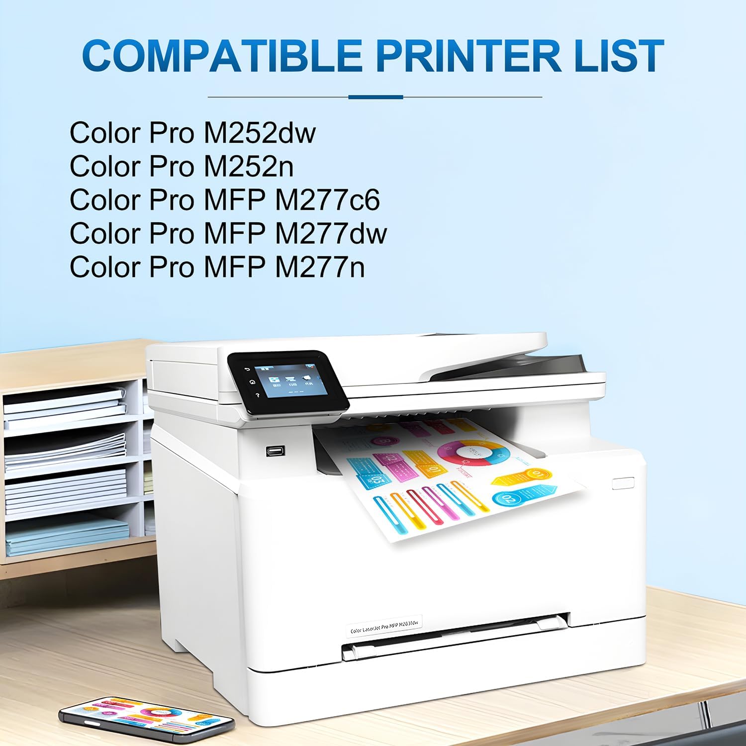 • Perfect Compatibility: 201A toner cartridge 4 pack is compatible with Color Pro MFP M277dw M277c6 M277n, Color Pro M252dw M252n M252 Ink Printer