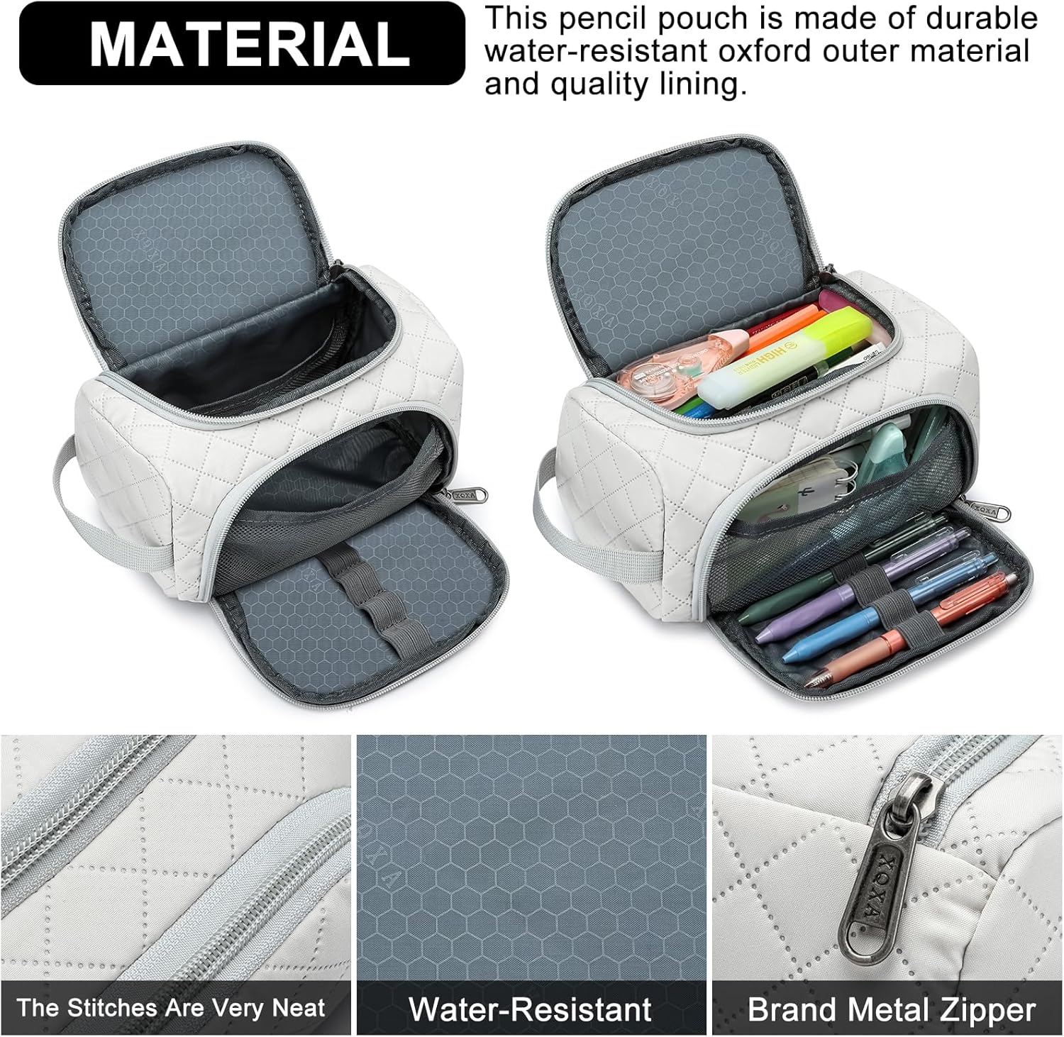 • 【Material】This practical pencil case is made of polyester fabric, which is washable and wear-resistant. The zipper head is made of solid stainless steel and is equipped with a sturdy metal zipper, making it easier to grip and use