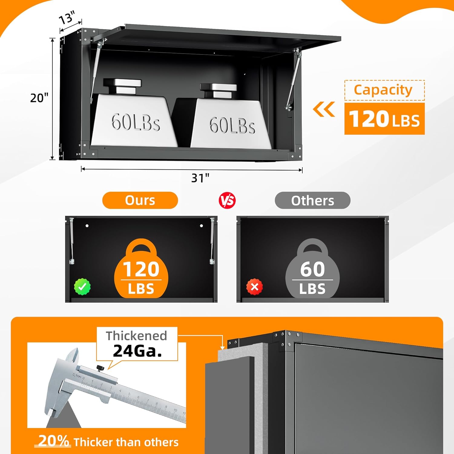 • 【High Strength Material】This metal wall cabinet is made of cold rolled steel, reinforcing the structure so that the wall cabinet can withstand more vertical pressure without warping. The steel cabinet can hold up to 200 pounds. The surface is coated with durable electrostatic powder coating and phosphatized for better adhesion and easy cleaning.