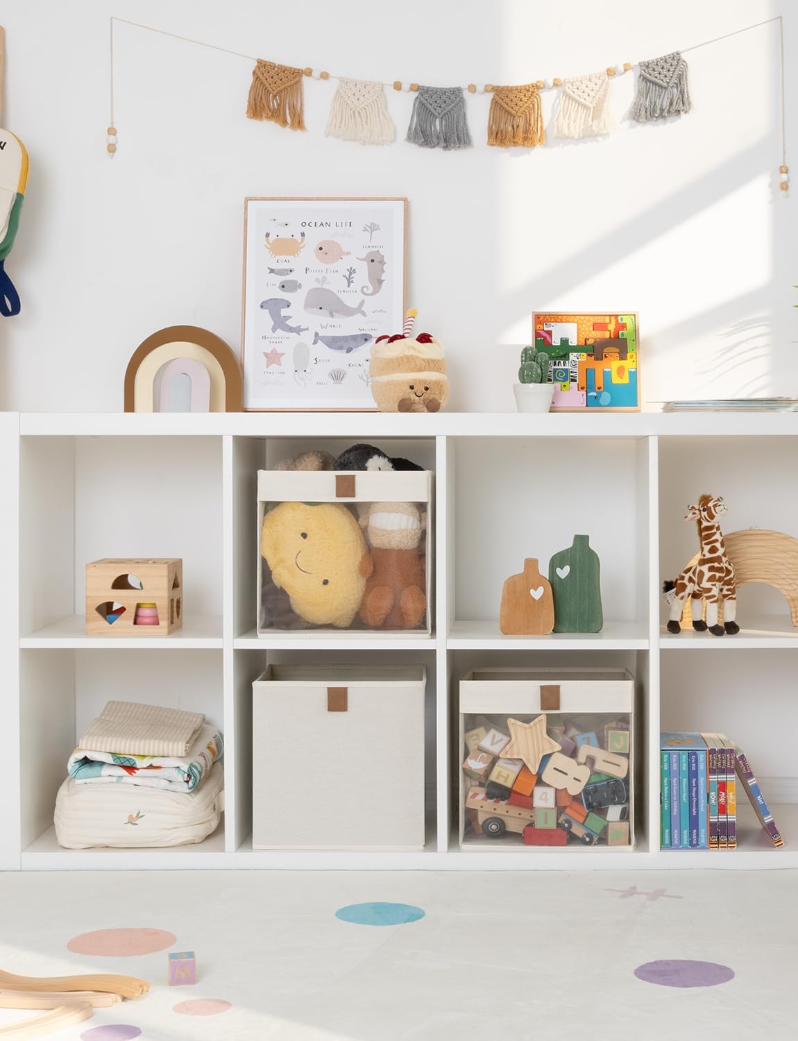 • Soft PU Pull-Tab: Equipped with soft and sturdy PU handles, these cube storage bins offer a smooth and comfortable grip. Designed for convenience, they make it simple to transport your storage cubes from one location to another.