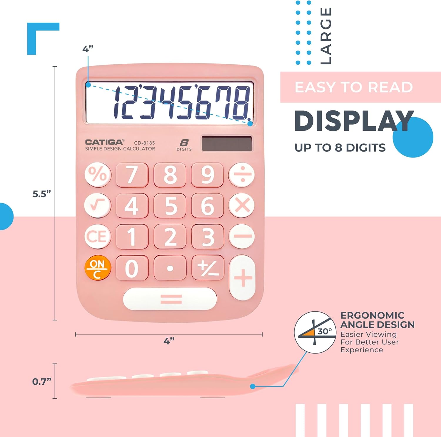 • EASY-TO-USE DESIGN: With its large screen, this calculator is made for convenient and comfortable everyday use. Its tilted and angled display allows you to easily see your calculations without straining your eyes