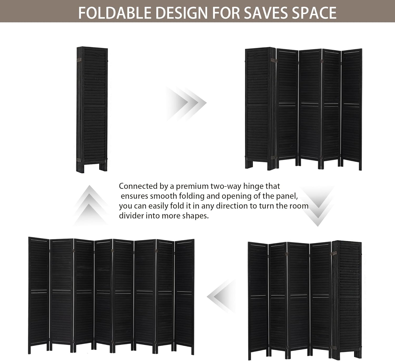 NicBex 8 Panel Room Divider,5.6FT Wood Room Dividers,Folding Privacy Screens Portable Freestanding Partition Wall Dividers for Room Separation,Home Bedroom Office,Black