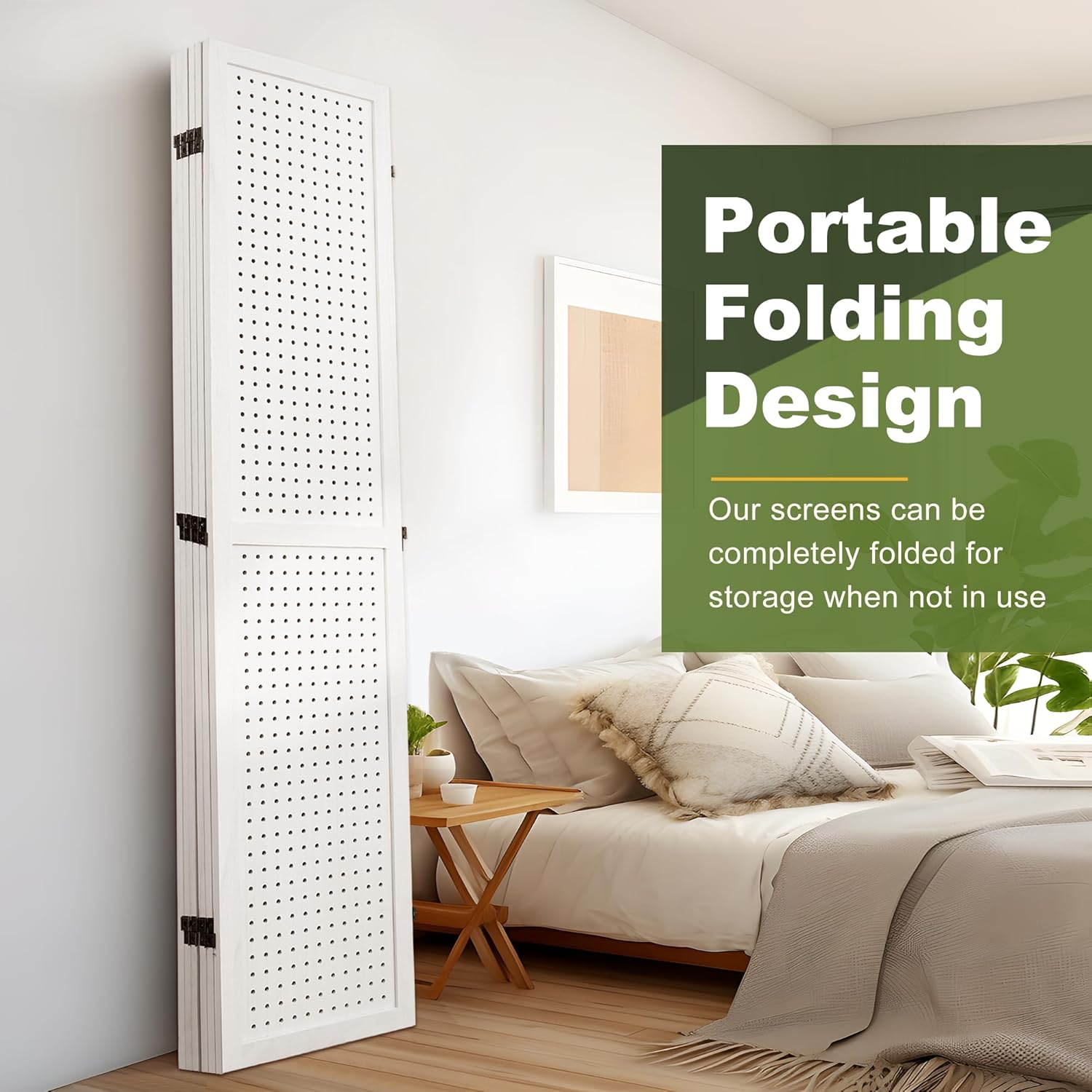 NicBex 6 Panel Pegboard Display,5.6FT Wood PegBoard Room Dividers,Folding Privacy Screens Portable Freestanding Display Board for Craft/Art Shows,Room Separation,White