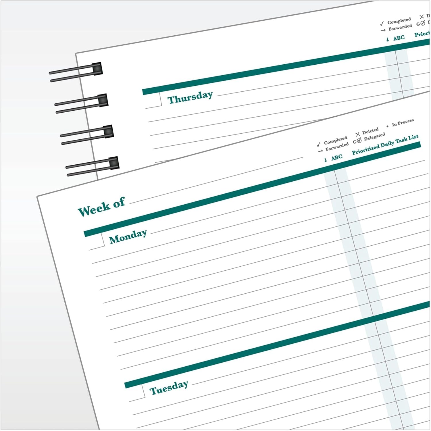 • Weekly Layout for Focused Planning: Each week is laid out on a two-page spread, providing a clear overview of your appointments, tasks, and priorities.