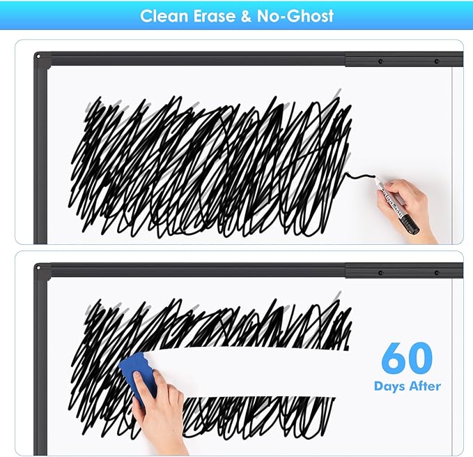 • 2X Stain Resistantence,Build to last: With specialized 365โ„‰ baking technique, maxtek rolling whiteboard features 2X surface density that of a regular whiteboard, making this large white board hard to scratch and 50% less ink absorbed. Therefore, we can easily erase any handwriting, even left for a long time, without leaving any ghosting