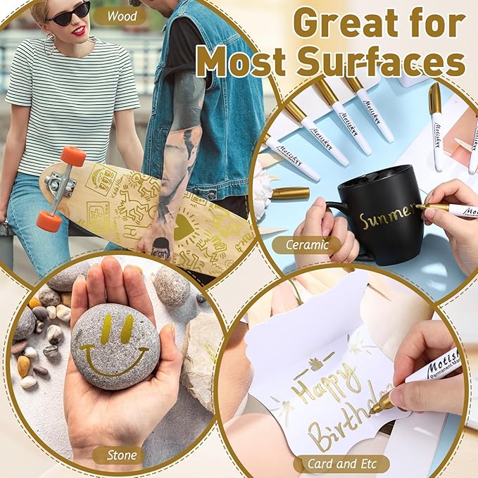 • Multiple Uses: gold metallic permanent markers that can add a metallic texture, great for making thank you cards, birthday cards, DIY photo albums or scrapbooks, signing, drawing, DIY gift bags, label storage, etc., or giving as Christmas and birthday gifts