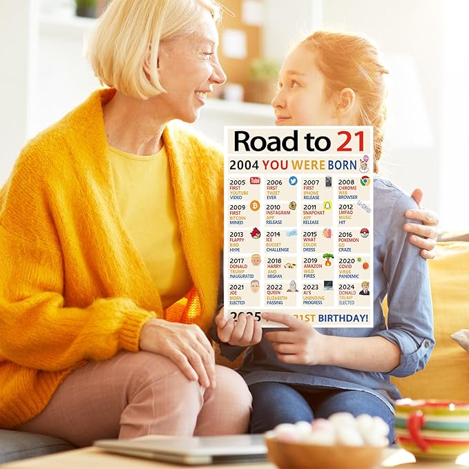 • Memorable Gift: Road to 2004 birthday card contains interesting events that happened every year, would be a memorable gift for anyone who turns 21 in 2025.