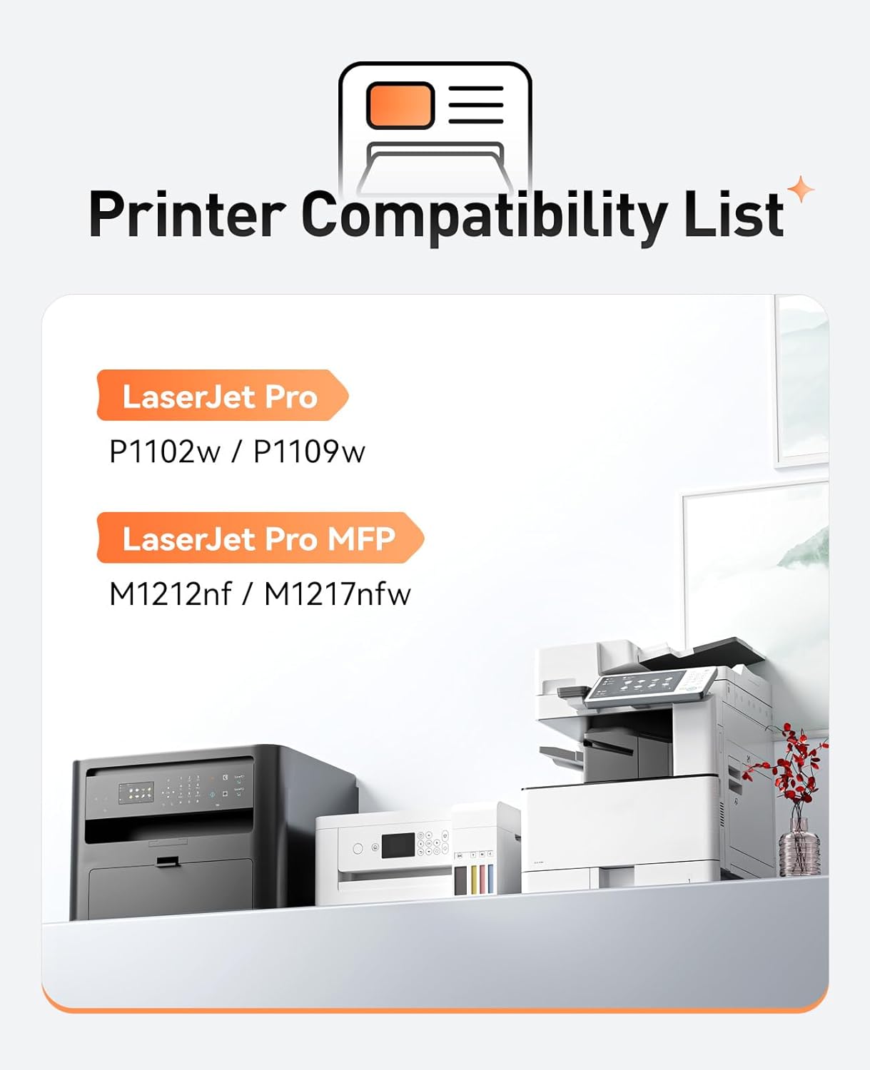 • Compatible Printer: Compatible with HP LaserJet Pro MFP M1212nf M1217nfw P1102w P1109w P1102 P1109 M1212 M1217 LBP6000 MF3010 P1005 P1006 P1007 P1008 Printer