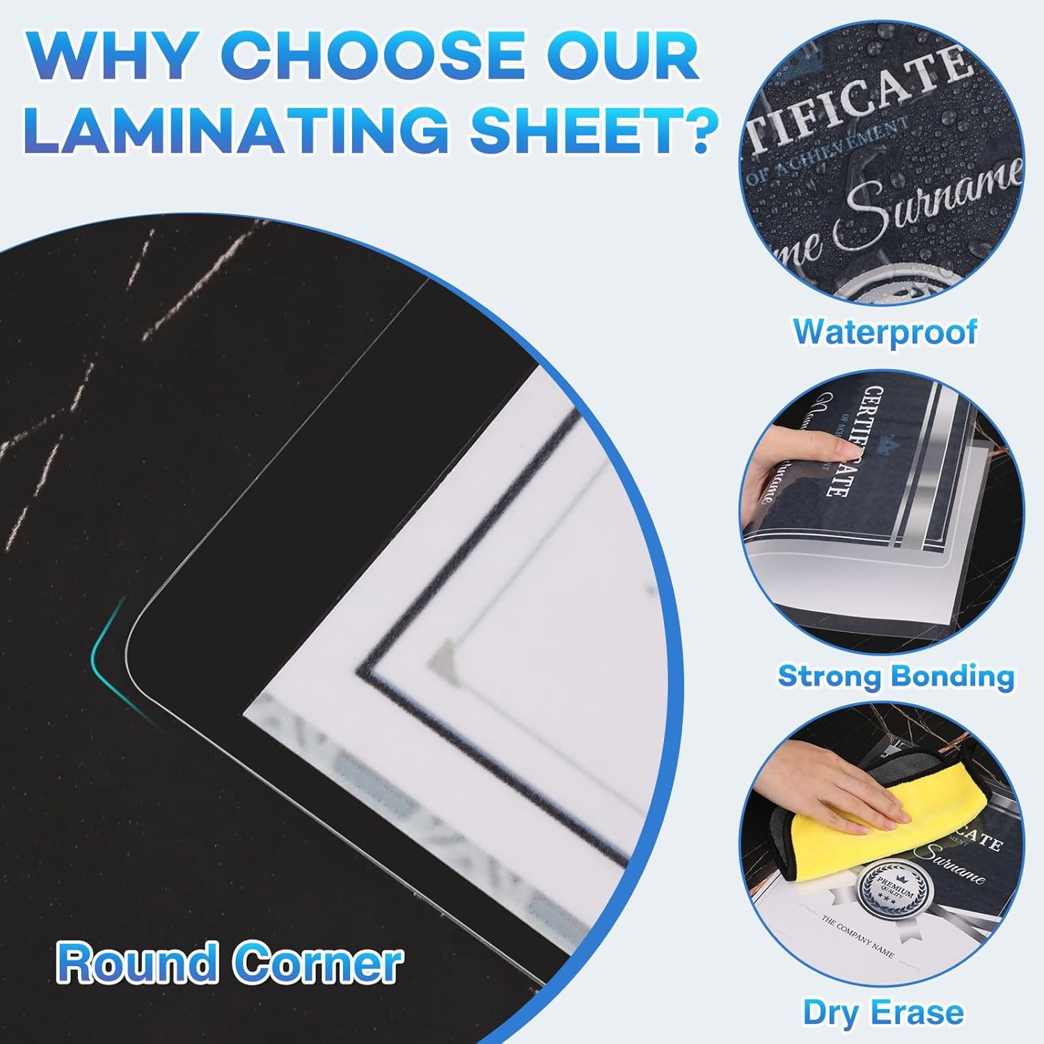 • Premium Material: Our composite paper is crystal clear, glossy, of excellent quality, with a double-layer coating that is sturdy, durable, tear resistant, scratch resistant, waterproof, and colorfast, protecting your documents from scratches.
