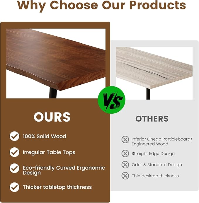 • 【Multi-function Solid Table】 This solid wood office table can be used as computer desk, office workstation, meeting desk, study table, writing desk, gaming desk,Dinning Table etc. Whether you need a focused study area, a creative workstation, or a comfortable reading nook, this wood desk accommodates various needs.