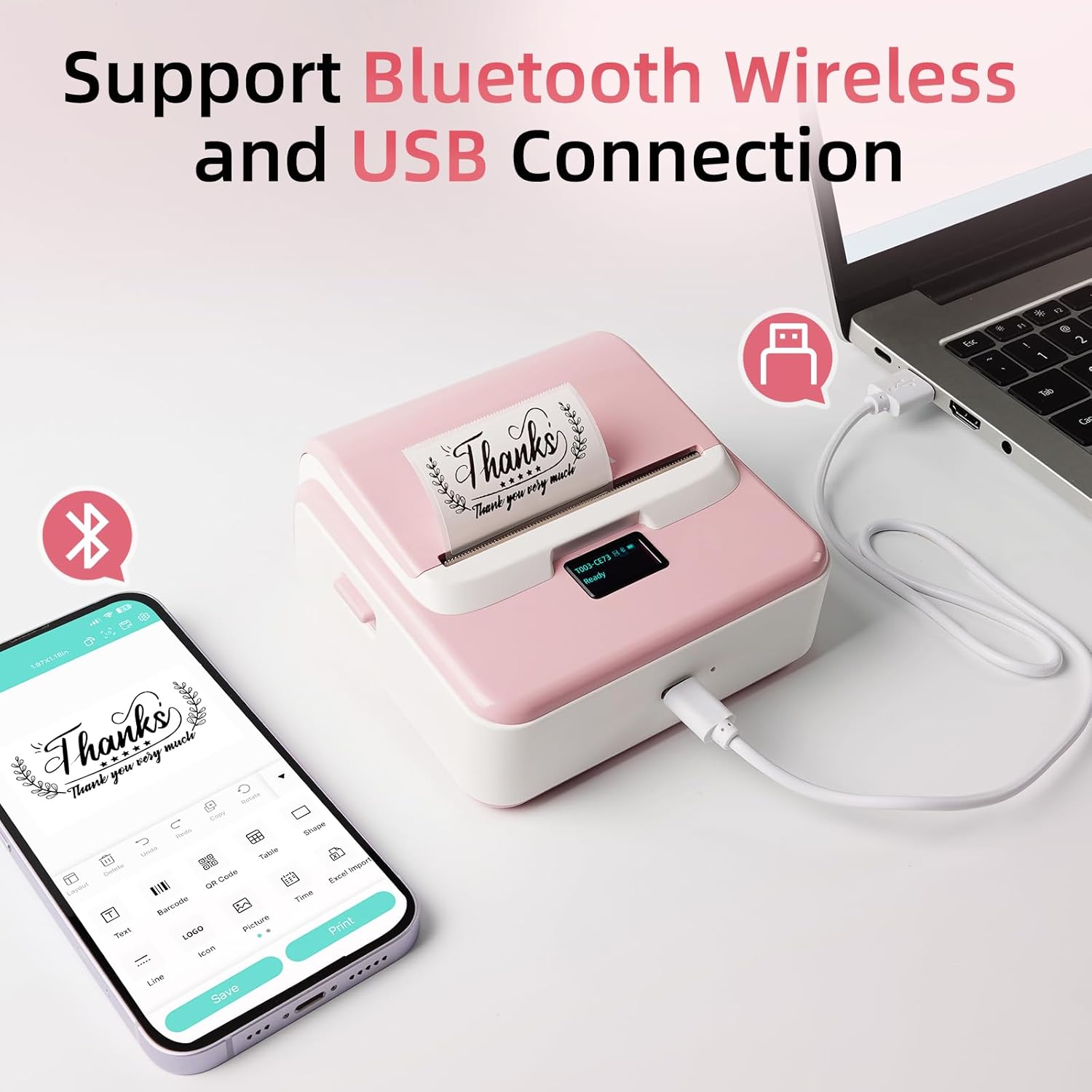 • Practical Screen Display: The T003 thermal printer with a LED screen enhances your printing experience with convenience and fun; It provides a clear view of the battery level, Bluetooth connection status, and printing status at a glance. Additionally, it allows you to select label types, set sleep timers, and schedule automatic shutdowns for optimal usability; For optimal performance, we recommend charging the printer before first use