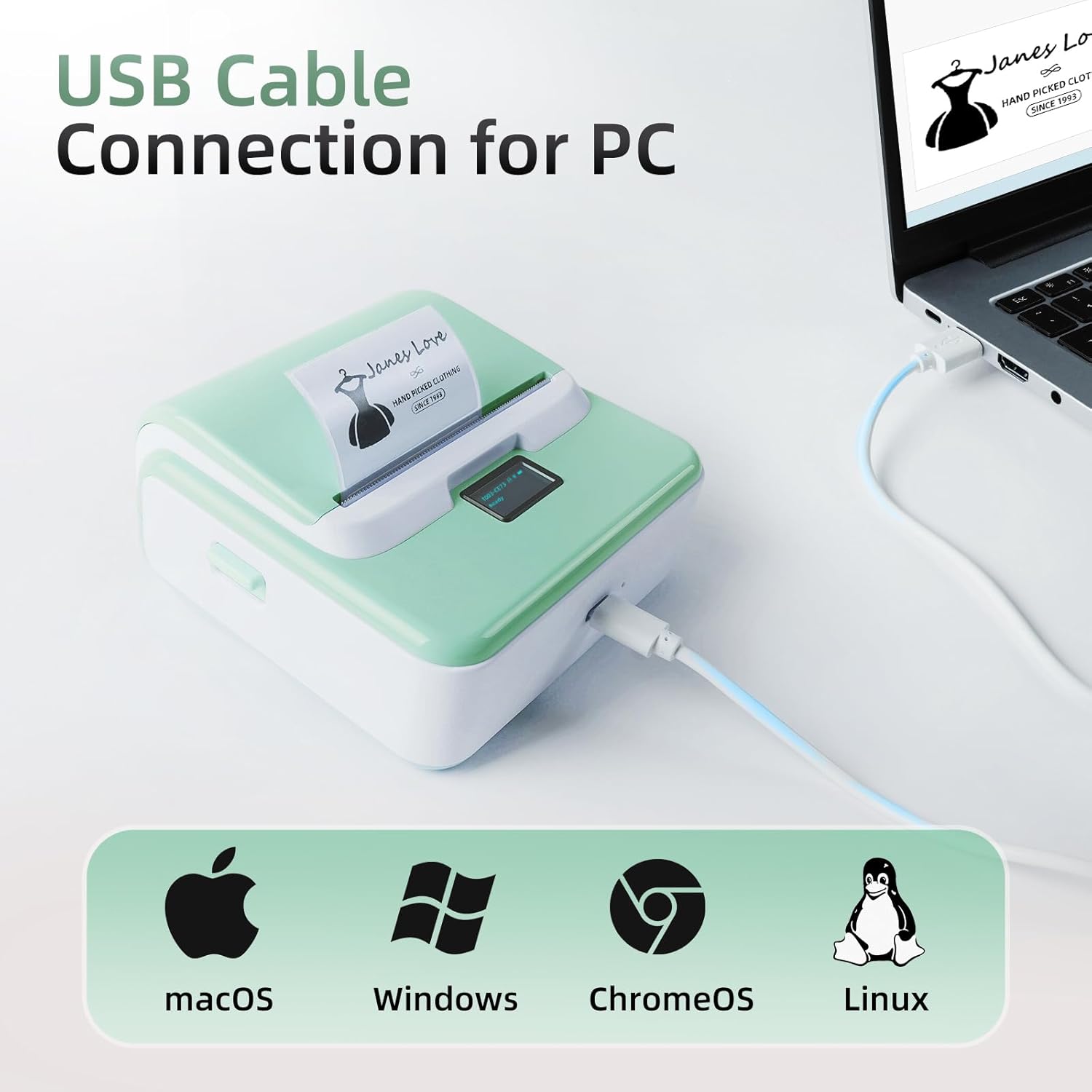 • Effortless Connectivity: ORGSTA T003 Bluetooth label maker is compatible with iOS, Android, and PC; Connect effortlessly to your phone via Bluetooth or to your computer using a USB cable; Label printer includes an easy-to-install driver compatible with Windows, Mac OS, Chrome OS and Linux; For iOS & Android phone, simply download the "4Barcode" app