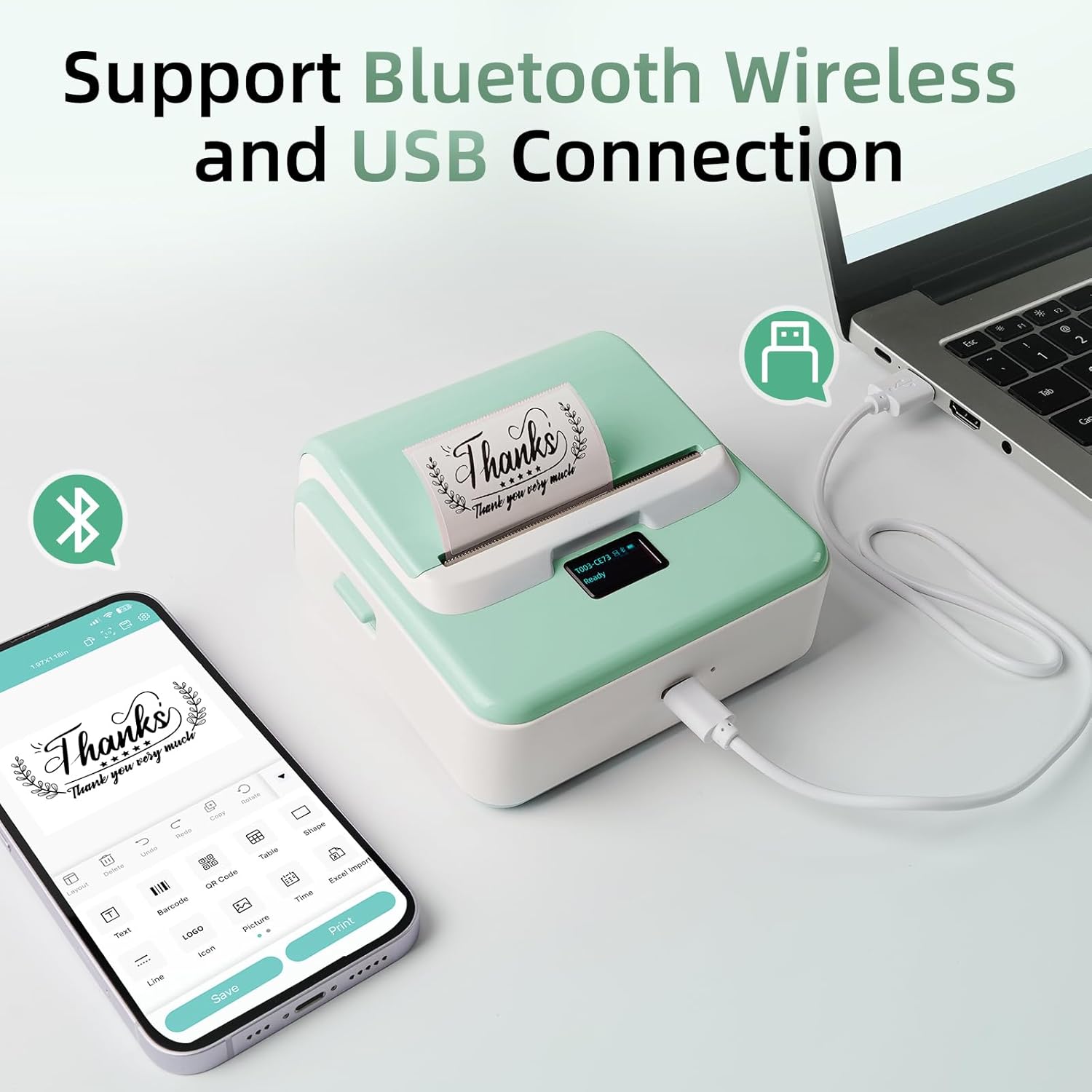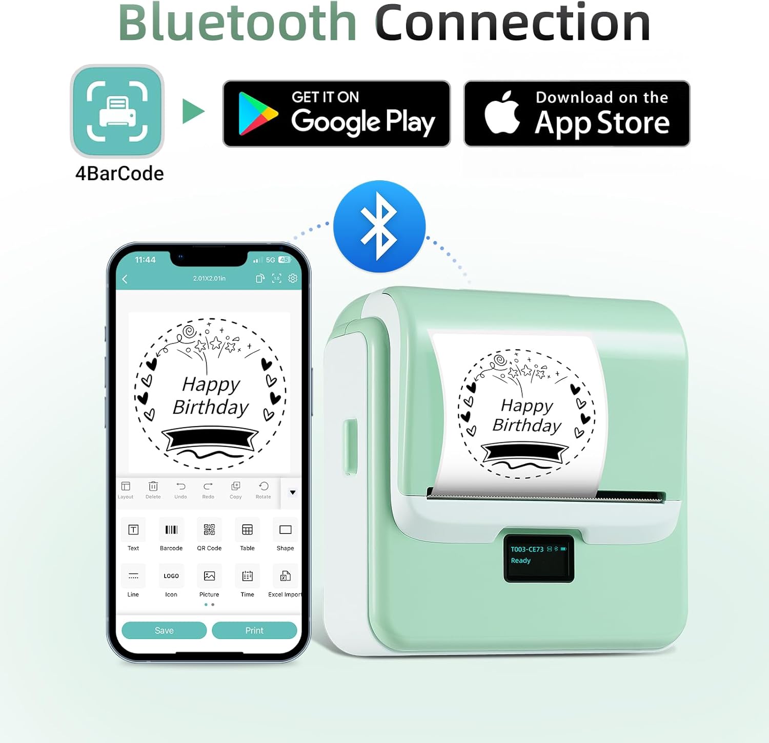 • Powerful App: With Bluetooth connectivity, you can use the free 4Barcode app, which offers over 150 ready-to-use label templates to boost your efficiency; You can also design and save your own templates with access to 80+ fonts and 670+ icons; The app supports a variety of features, including QR codes, barcode labels, tables, materials, timestamps, numbers, text, icons, and more, enabling fully customized label creation