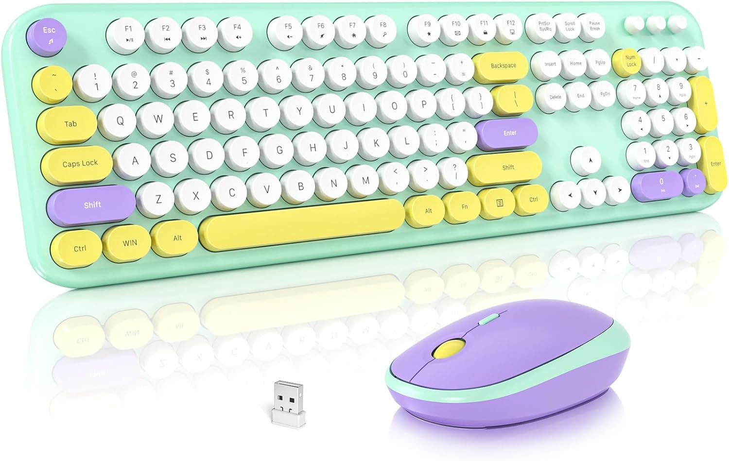 • Auto Sleep Mode: Our cute colorful keyboard and mouse wireless combos both require only 1 AA battery. Wireless keyboard and mouse automatically enter sleep mode after 5 minutes of inactivity, efficiently saving battery life and reducing the need for frequent replacements.