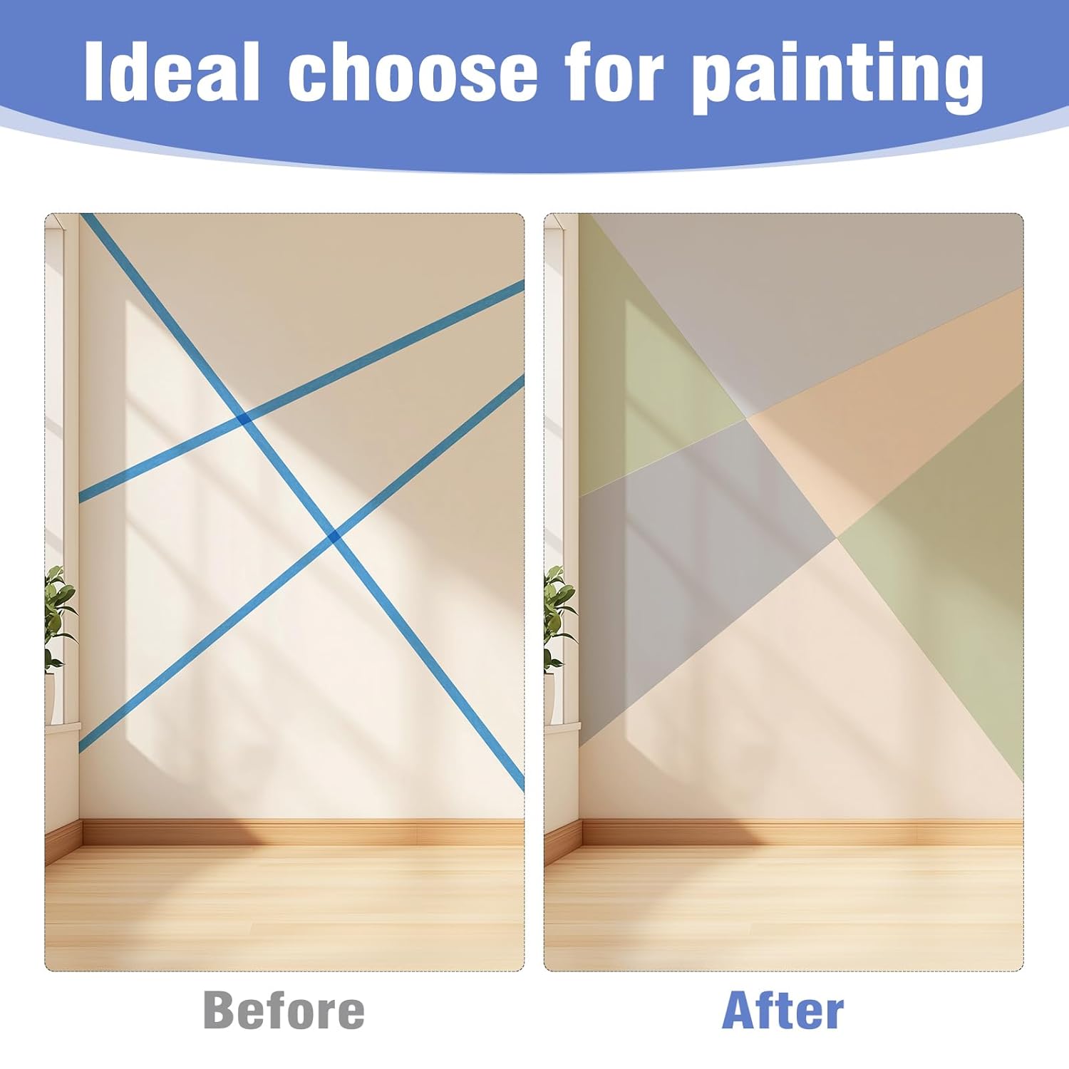 • No residue: Blue painters tape has suitable stickness and is used for smooth and flat walls or marble and closet. It is not easy for paint to seep on the surface after painting and tearing it off, and there is no residue on the back