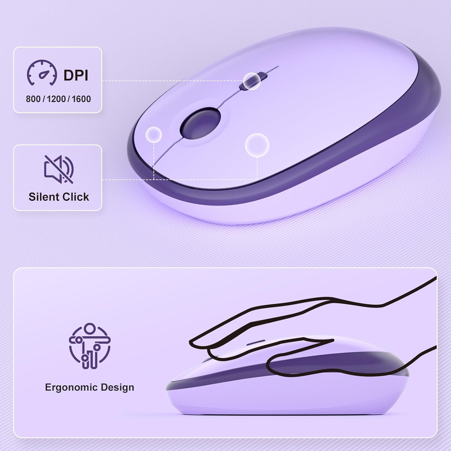 • Reliable 2.4G Wireless, Plug & Play: Experience stable, interference-free wireless connectivity up to 33 feet (10 meters). Simply plug in the USB receiver (conveniently stored inside the mouse) and you're ready to go—no setup required.