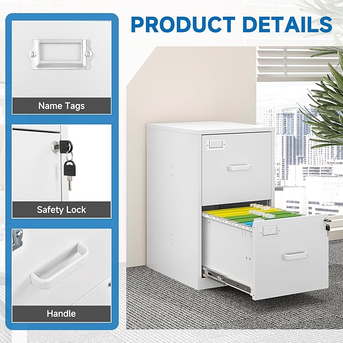 • 【HIGH CAPACITY】This vertical file cabinet for home office has 2 drawers of large storage space, fully retractable ball bearing drawer slide rails for easy access to all folders, file drawers with adjustable hanging rods can hang letter size hanging folders to let your files Well organiz