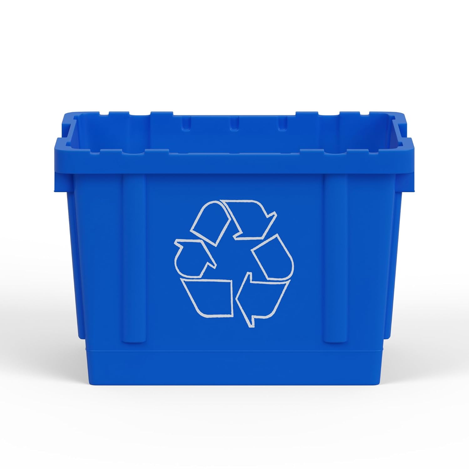 14 Gallon Rectangular Blue Recycling Bin | Inside Outside Curbside | Stackable Box for Paper Plastic