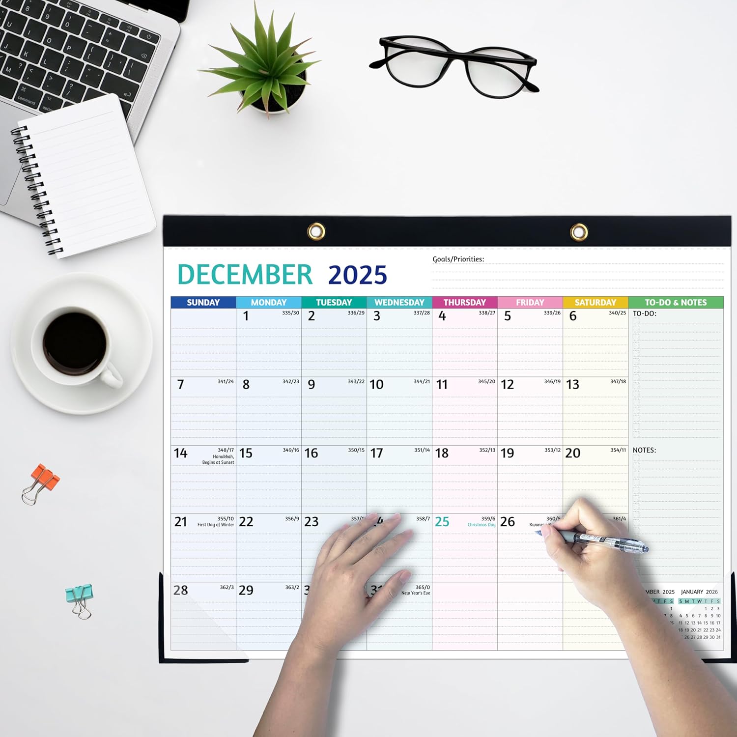 • 🌈 DESK/WALL CALENDAR 2025-2026 - With 2 hanging holes, this 2025-2026 calendar can be used as a desk calendar or as a wall calendar to hang wherever you want to place it. Besides, the pages are perforated so you can easily tear out each page or keep it.