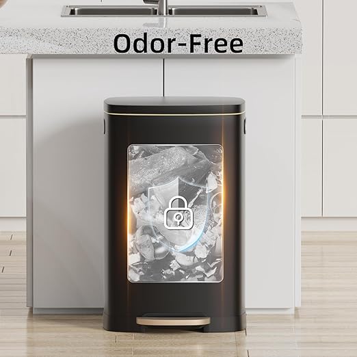 • 🔇 Silent Close & Stay-Open Lid: Quiet damping technology prevents slamming noises. Lid stays open at 90° for easy trash disposal or inner bucket cleaning—ideal for cooking and cleaning tasks.