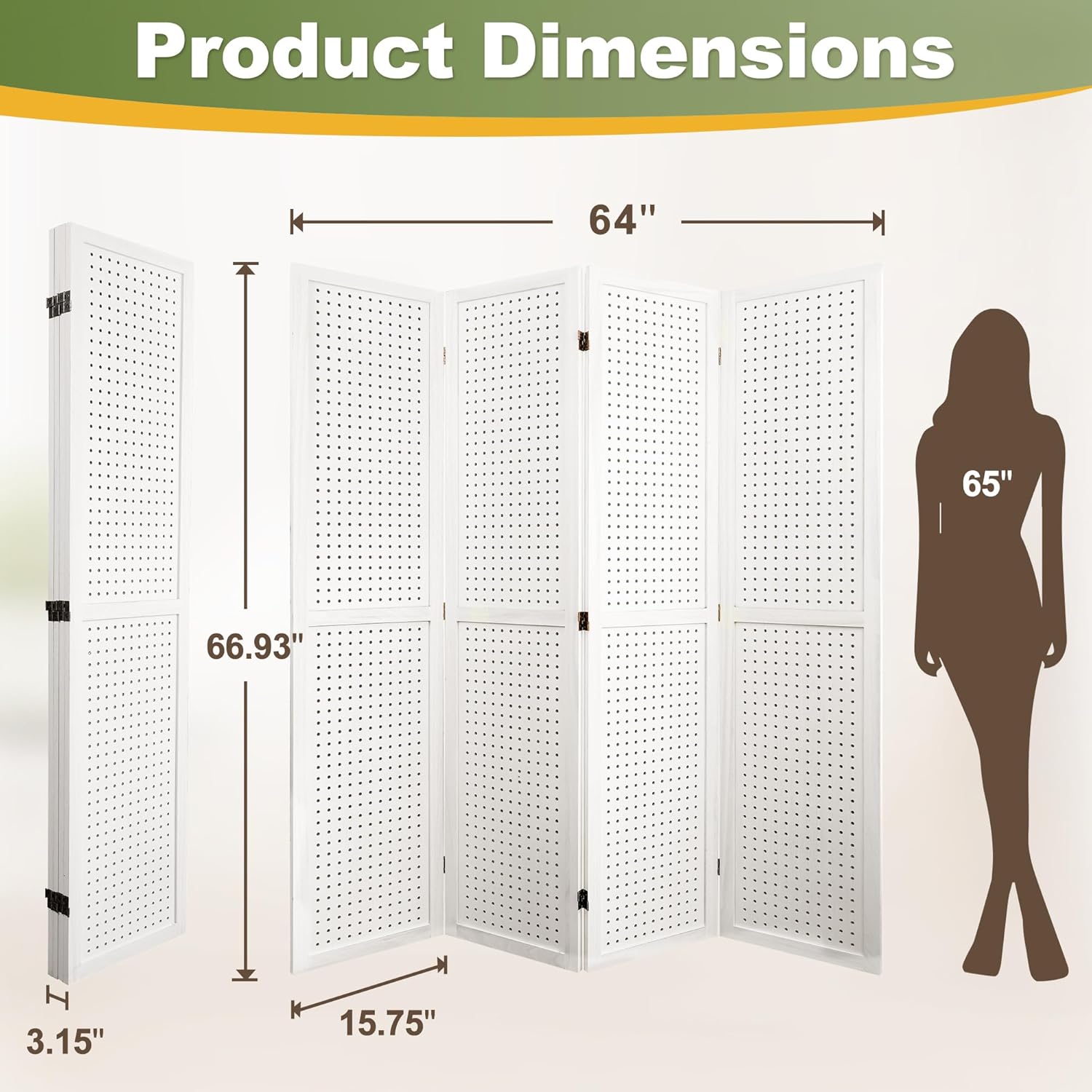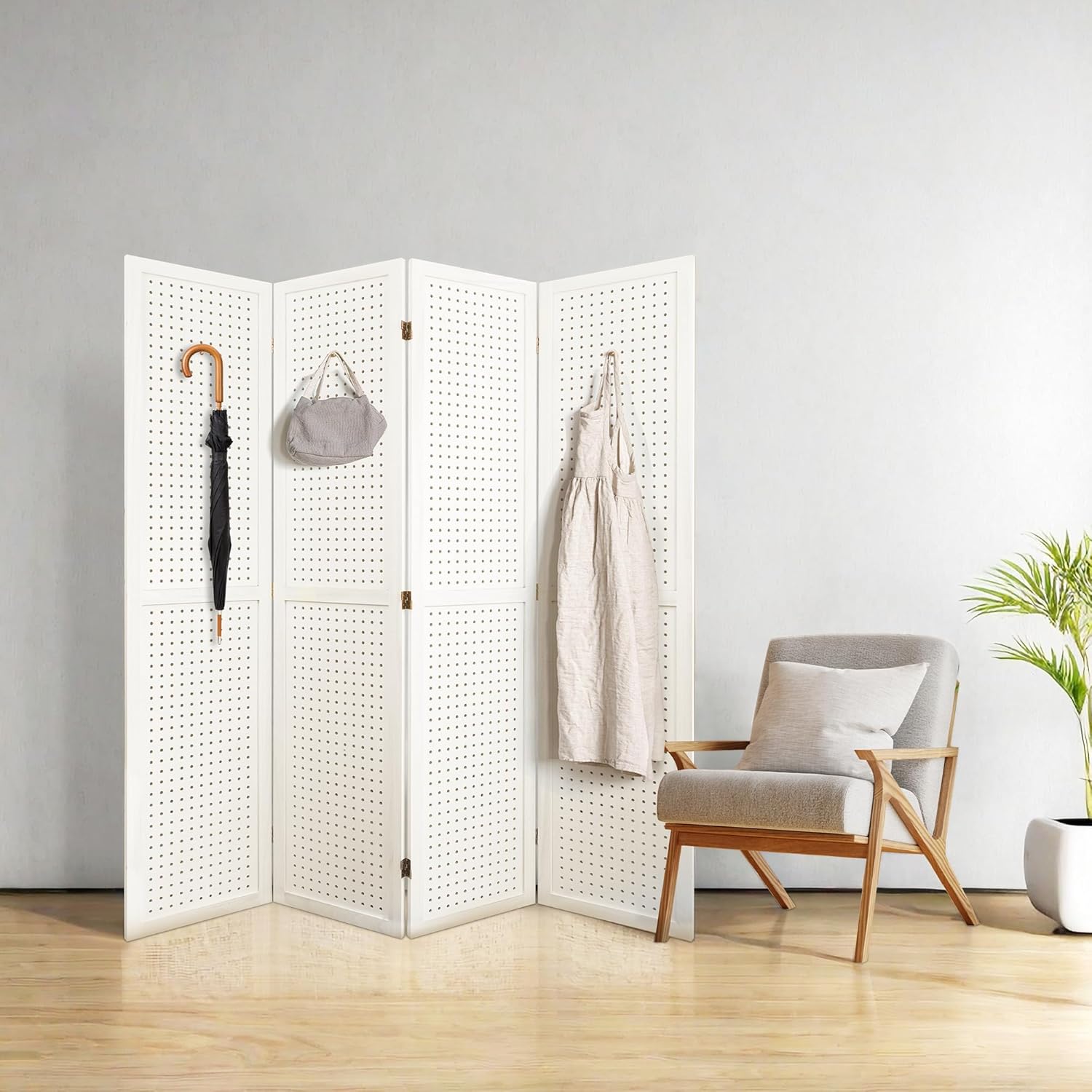 NicBex Room Divider 4 Panel Pegboard Display 5.6FT Wood PegBoard Room Dividers, Folding Privacy Screens Portable Display Board Wall Divider for Craft/Art Shows, Room Separation, White