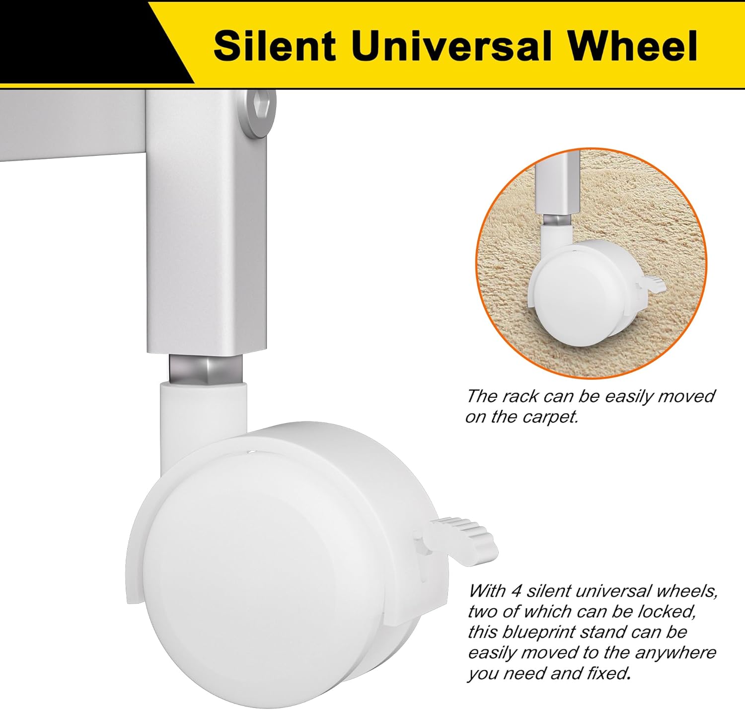 • 【Silent Wheels】Our blueprint holder is equipped with silent wheels and two brakes. It will remain silent during use and will not roll around chaotically in the office
