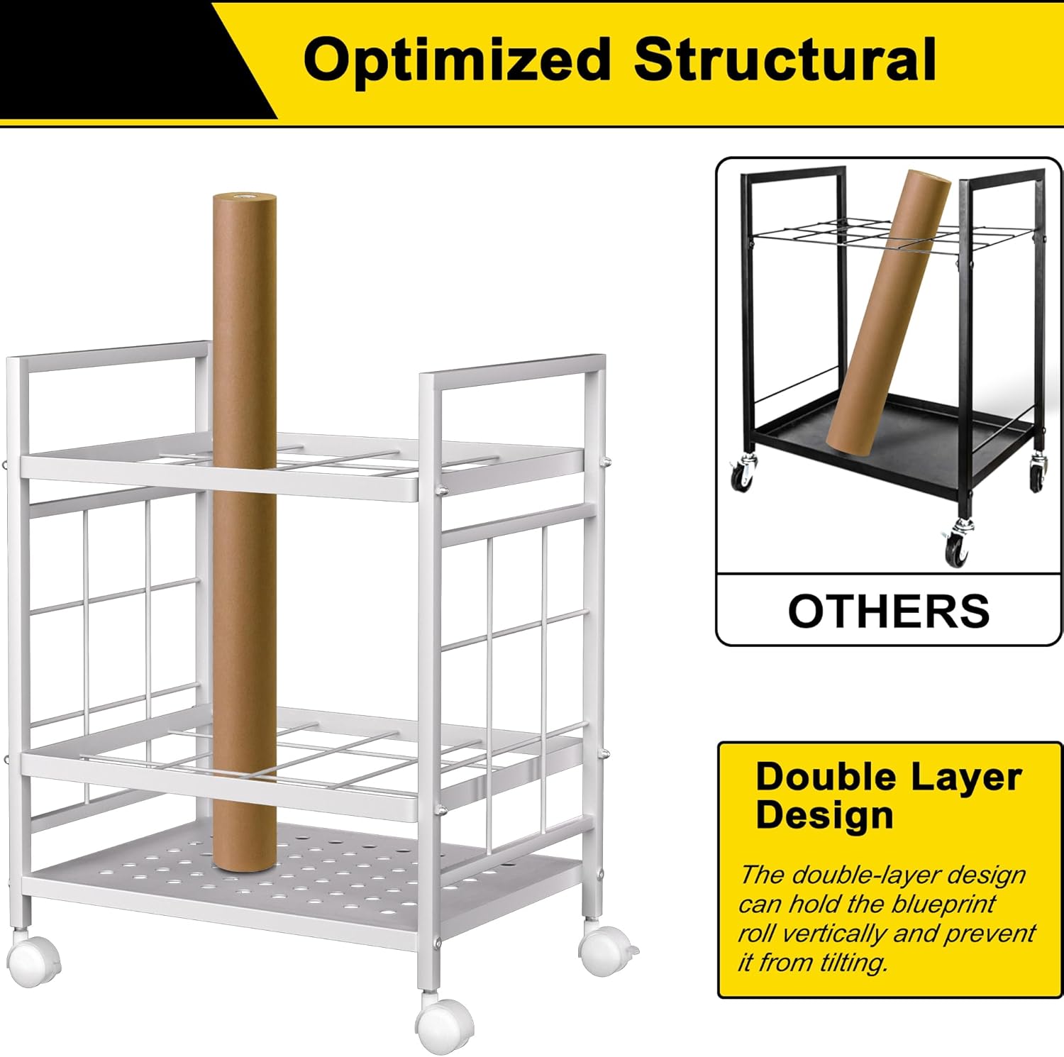 • 【Simplicity is Durability】Our blueprint storage rack cart has the simplest design. All-metal design, 12 compartments for storage, double-layer anti-tipping design, #-shaped appearance, and wheels. Yes, it's just that simple.