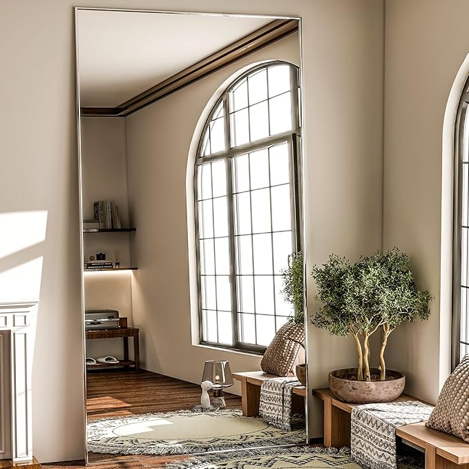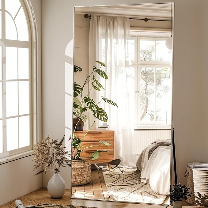 GLSLAND 76"x34" Full Length Mirror Extra Large Hanging or Leaning Rectangle Mirror Aluminum Alloy Thin Frame Bedroom Floor Dressing,Silver