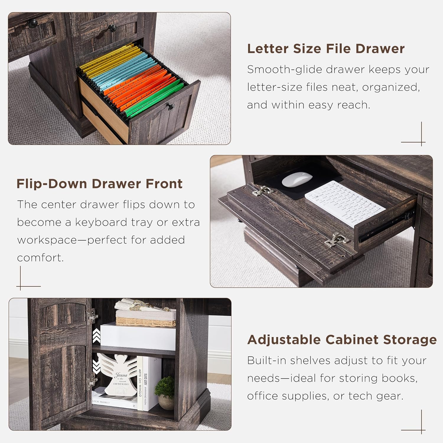 • Ample Storage for a Tidy Workspace: Keep your office organized with a large file drawer for letter-size documents, three utility drawers for supplies, and a cabinet with an adjustable shelf. A dedicated compartment also fits a vertical CPU tower—so everything has its place and stays out of sight.