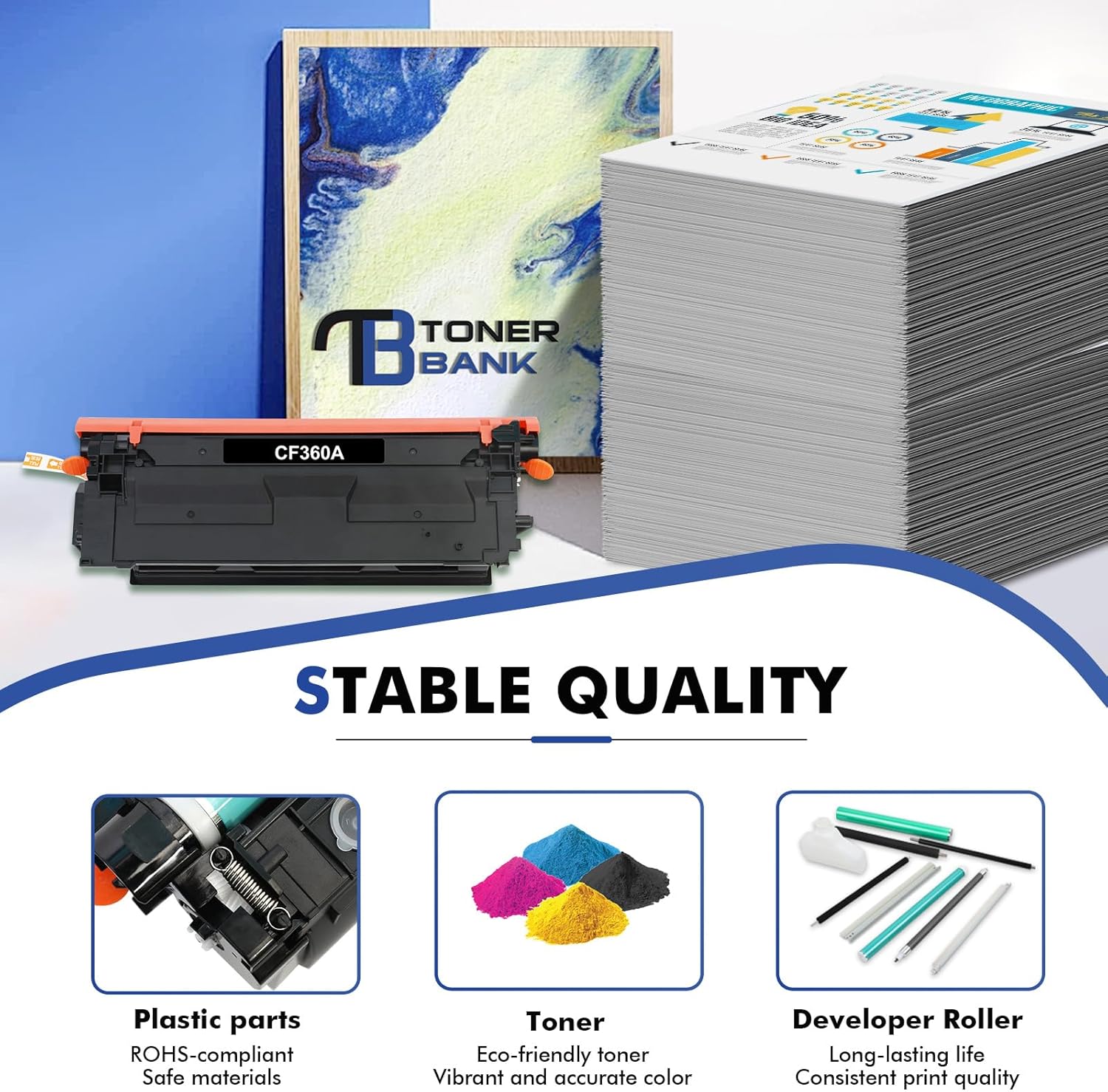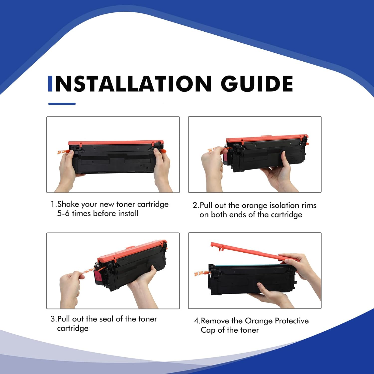 • Package Contents: 1 x CF360A Black Toner, 1 x CF361A Cyan Toner, 1 x CF362A Yellow Toner, 1 x CF363A Magenta Toner for HP 508A M553 Toner Cartridges