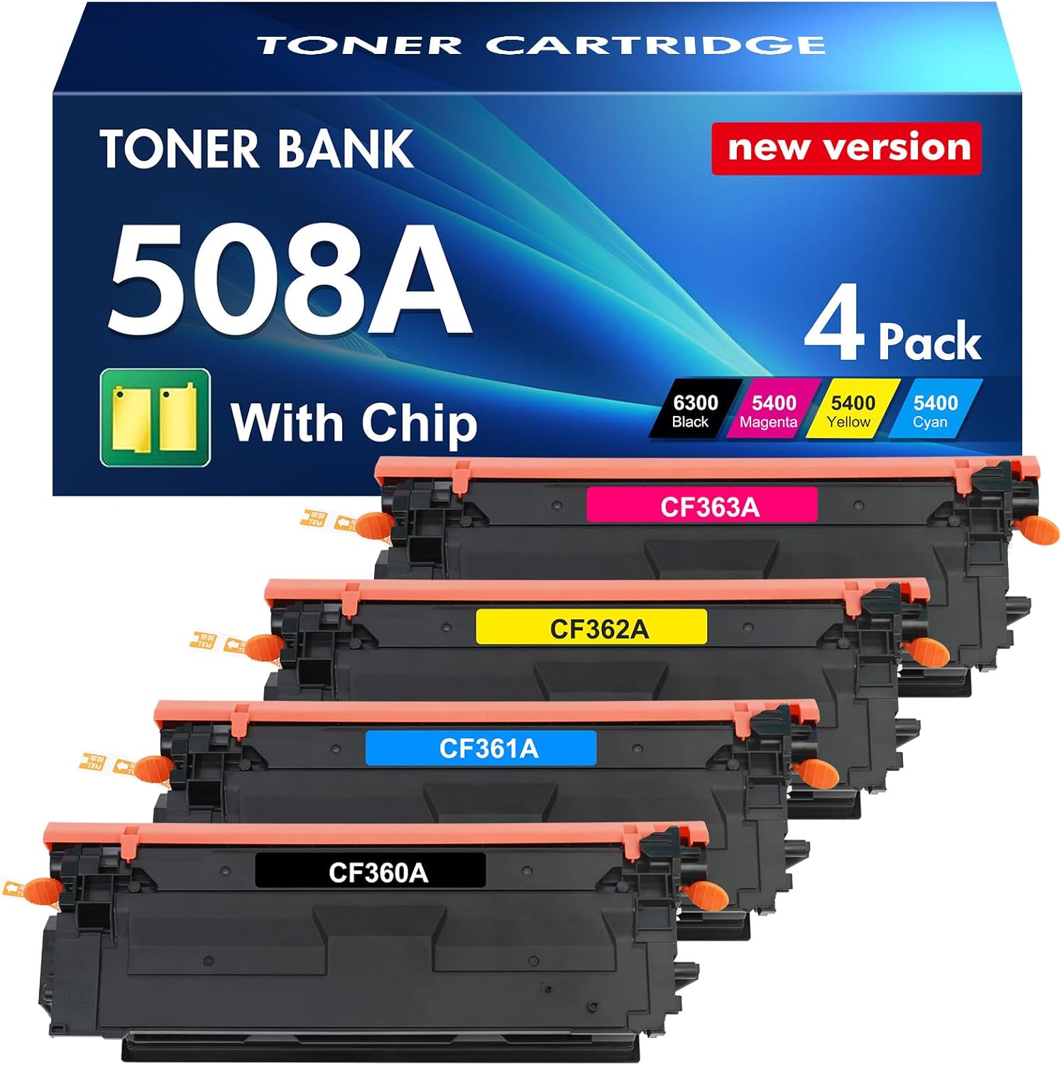• Include: New Version 4 packs 508A M553 toner cartridges compatible for HP CF360A CF361A CF362A CF363A 508X black cyan yellow magenta toner cartridges (compatible for HP 508X CF360X CF361X CF362X CF363X toner cartridges)