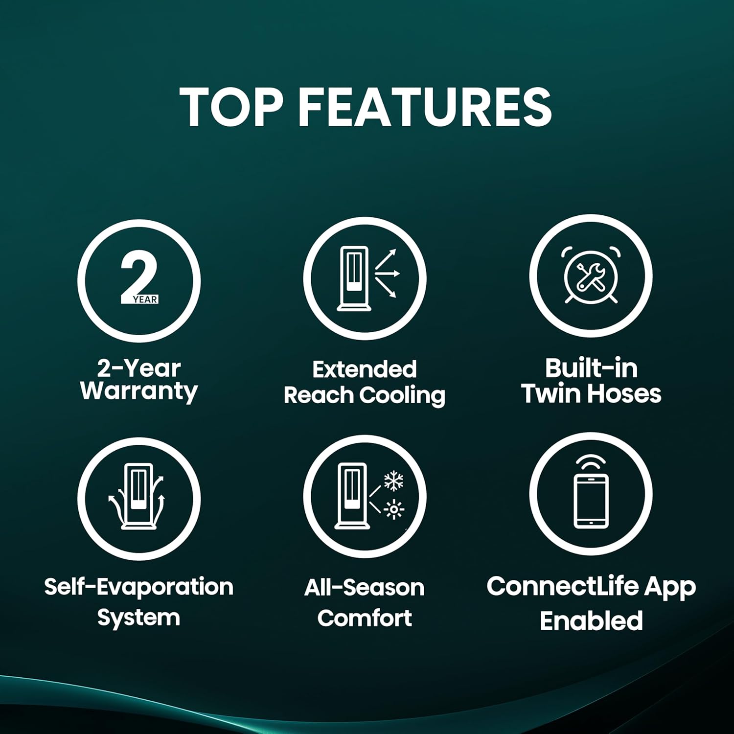 • Effortless Installation – The built-in twin hose system and snap-in window kit allow for a quick, hassle-free setup, so you can enjoy comfort in minutes.