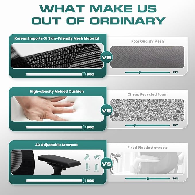 • ⏩ VENTILATED ERGONOMIC MESH OFFICE CHAIR--Adopting high-end breathable mesh fabric imported from Korea with great flexibility and durability, the high back office chair perfectly fits the curve of your spine and protects the cervical and lumbar spine. In addition, the lumbar support also offers well support for your back.