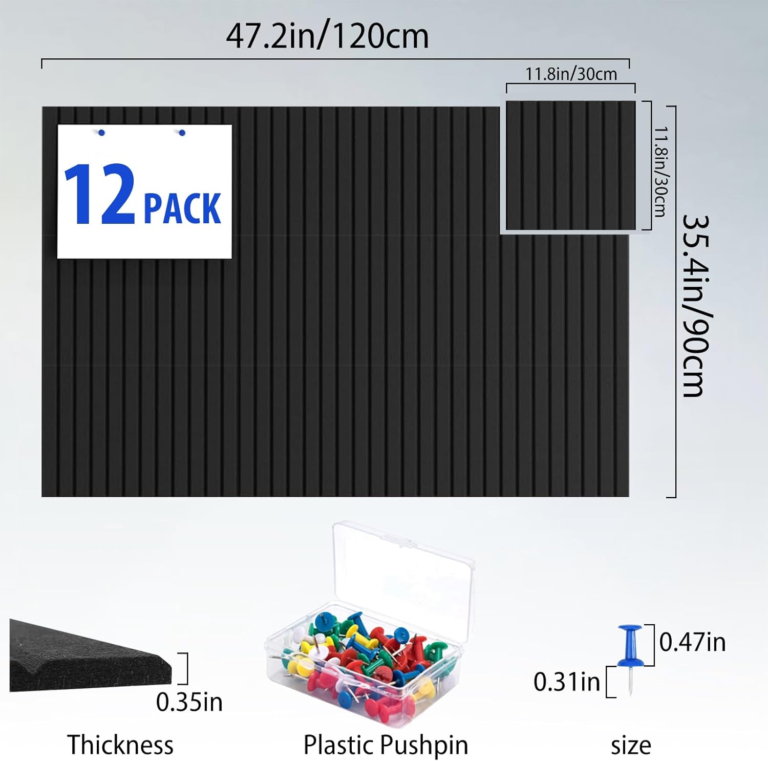 Cork Boards for Walls 48" x 36" Felt Board Alternative, 12 Pack Felt Wall Tiles Bulletin Board, Large Cork Board for Office Pin Board Tack Board Cork Boards