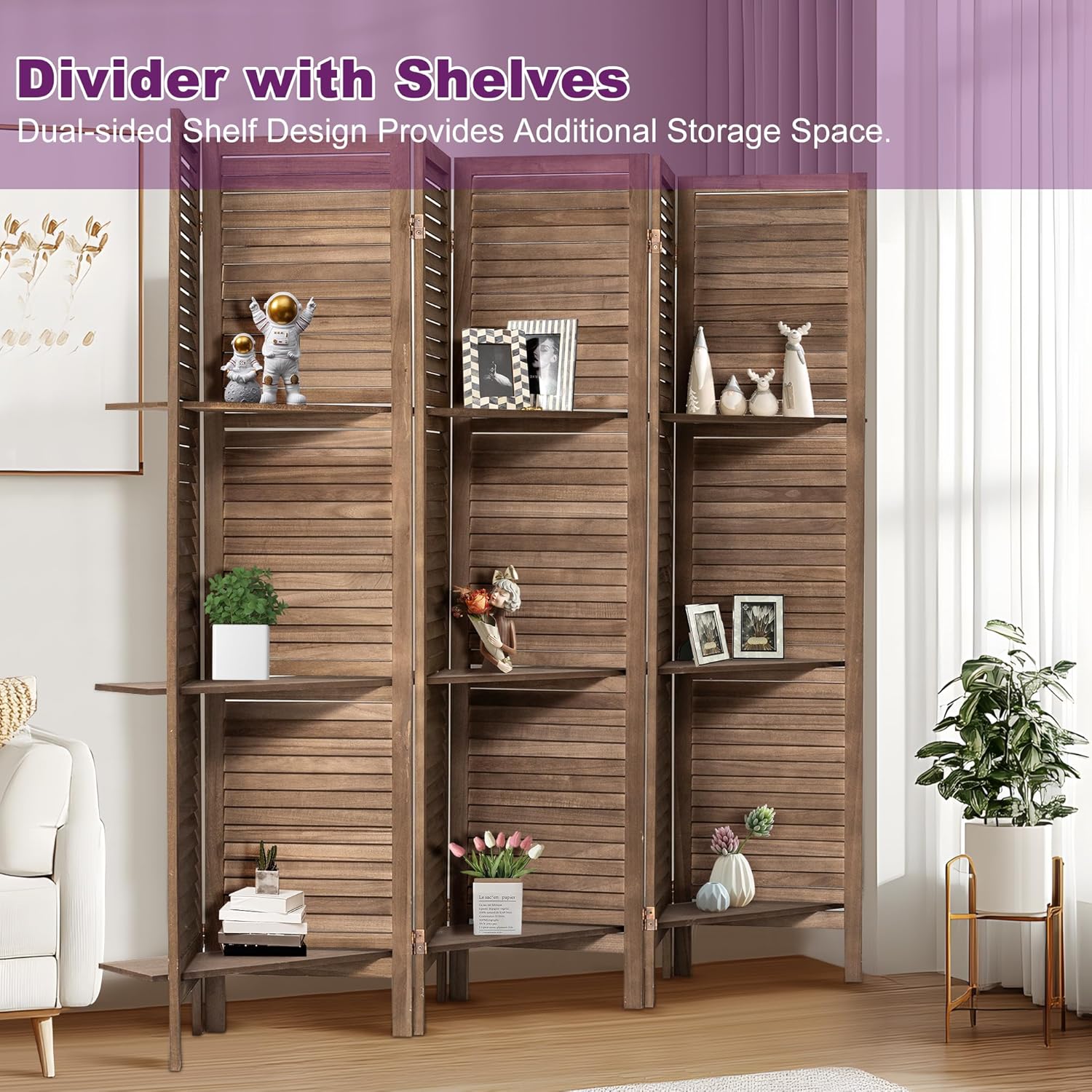 • Room Divider with Shelves:This room divider with shelves offers a perfect blend of storage and room separation. It serves as a functional partition for creating privacy or dividing spaces. Ideal as a wall divider for room separation, it’s perfect for displaying books, plants, or decor. Whether used as a room separator in the living room or as one of the room dividers and folding privacy screens in your bedroom or office, it enhances both style and functionality.