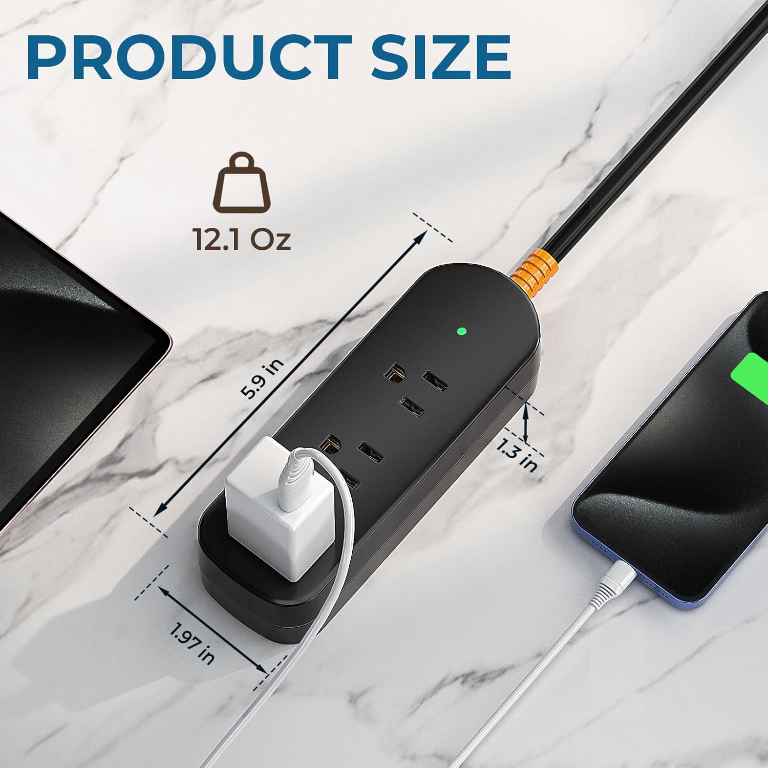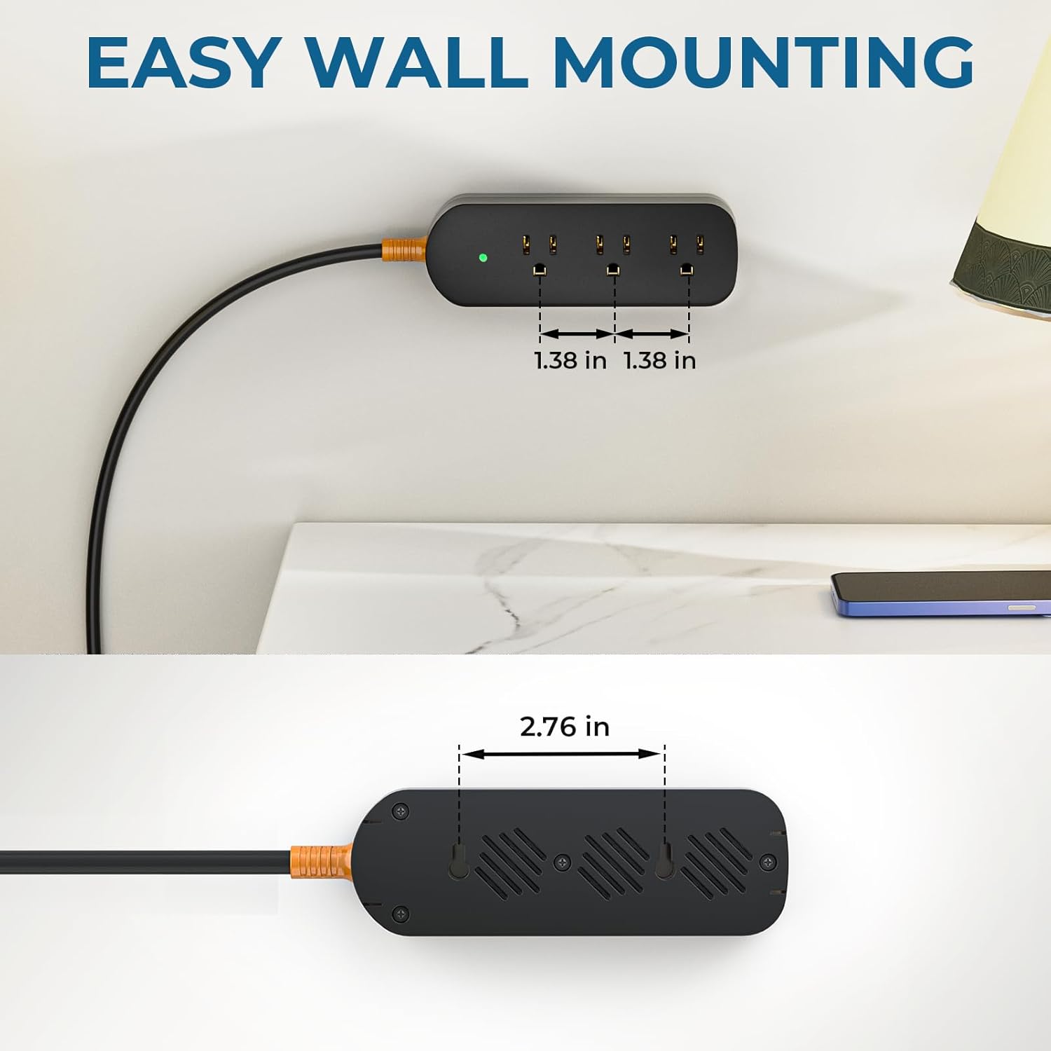 • Multi-Function Power Strips: 45-degree flat plug design saves space against the wall, and the cable swivels 360° for durability.2 keyholes on the back allow you to securely install this surge protector extension cord in various applications, such as workbenches, floor mounts, wall mounts, under counters, dorm room, garage, and more