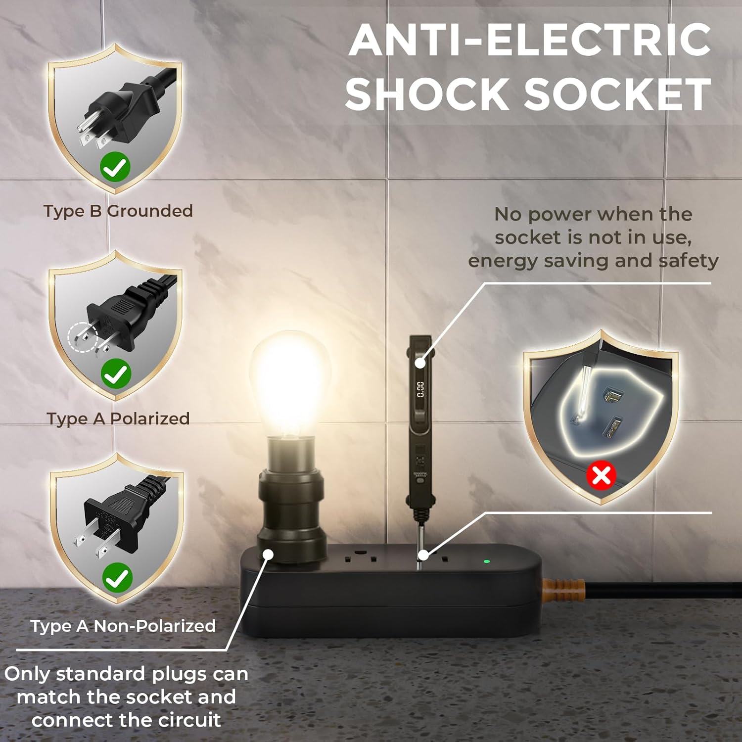 • Safety Structural Design:Our patented socket has been designed with safety as a top priority. It is compatible with standard American plugs and is equipped with a safety lock where the plug needs to be fully inserted to energise. This limits access to unintended items and helps prevent potential electrocution.