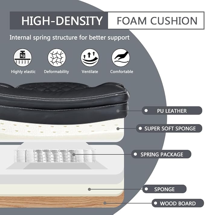 • 【PREMIUM MATERIALS】Our executive office chair is made with premium faux leather that is waterproof and stain-resistant, easy to wipe clean. The PU leather executive chair unique looks make it perfect addition to any office. Get that just-right feel with our practical sitting support , featuring a stable board, foam, spring pack and super soft sponge in the seat cushion for optimum support