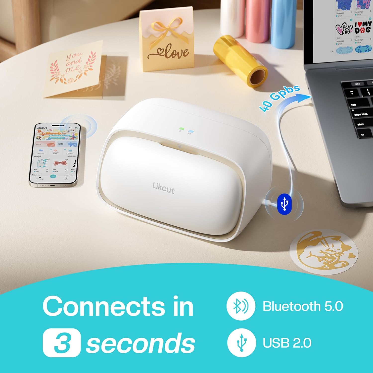• Stable, Reliable Connectivity: With Bluetooth 5.0 and USB 2.0 options, Likcut smart cutter machine connect in just 3 seconds. Enjoy uninterrupted creativity without worrying about wireless interference or connection drops