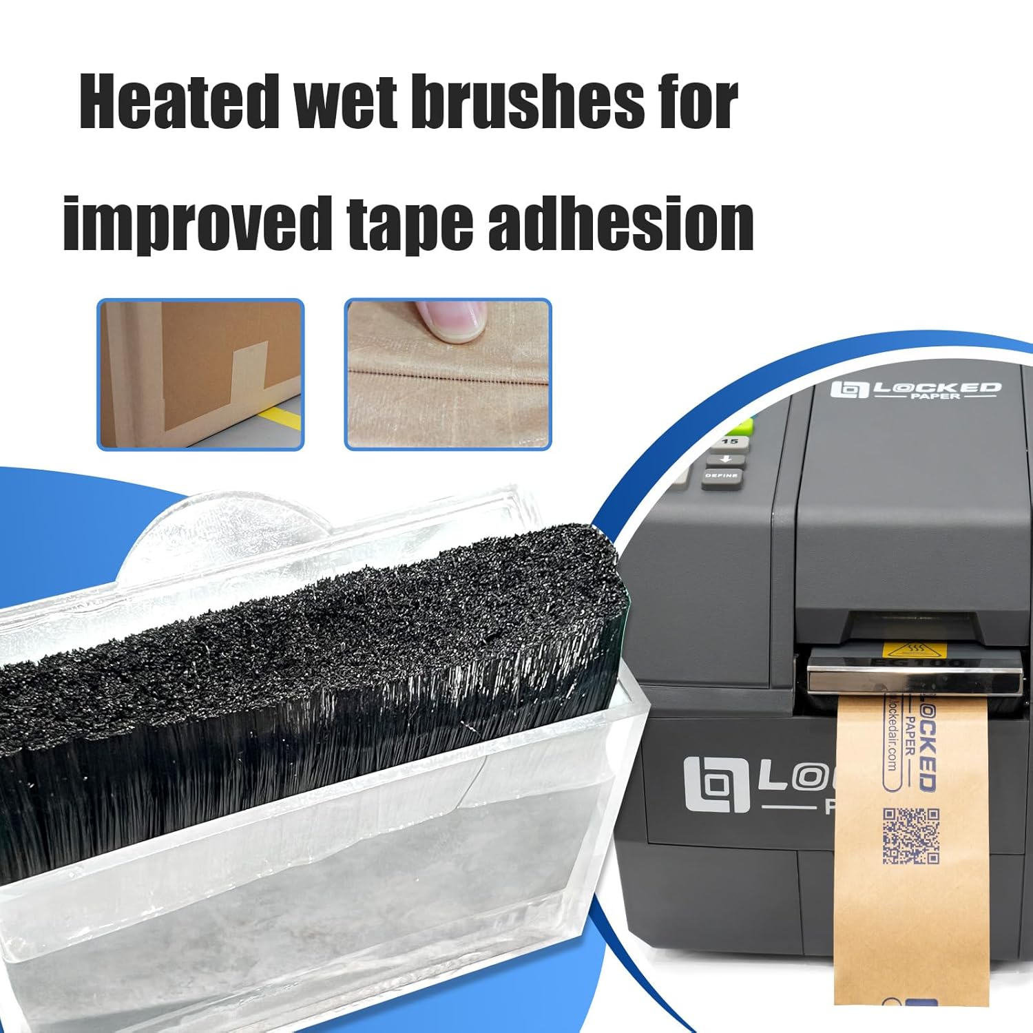 • Superb Adhesion and Tackiness: The water tape dispenser uses a unique brush with heatable bristles to evenly apply water to moisten the tape, and an intelligent temperature control chip that enables a stronger seal for warehouse storage and shipping box packages