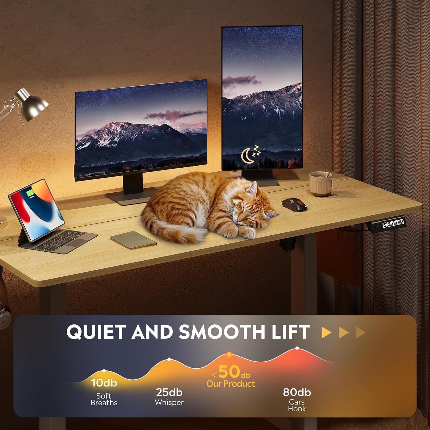 • 【Rock-Solid Stability Electric Standing Desk】Heavy-duty solid steel frame with aerospace-grade connectors passes rigorous 100,000-cycle durability test. Engineered to eliminate wobble even at full height, providing a vibration-free workspace for precision tasks. Outperforms standard desks with reinforced crossbars and industrial-grade stability technology.