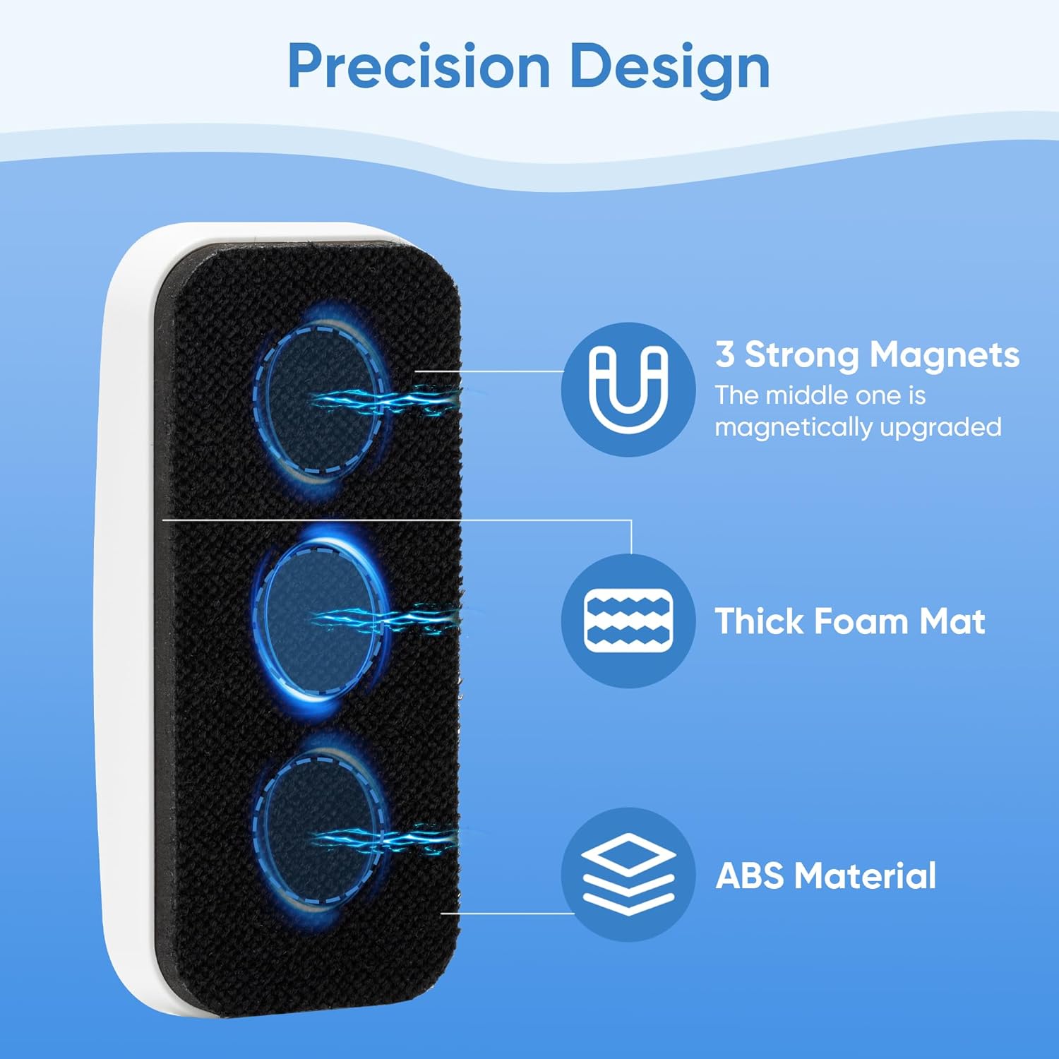 • Powerful magnets:magnetic white board dry eraser built-in three powerful magnets firmly attach to any magnetic whiteboard, chalkboard or metal surface, keeping the eraser within reach.