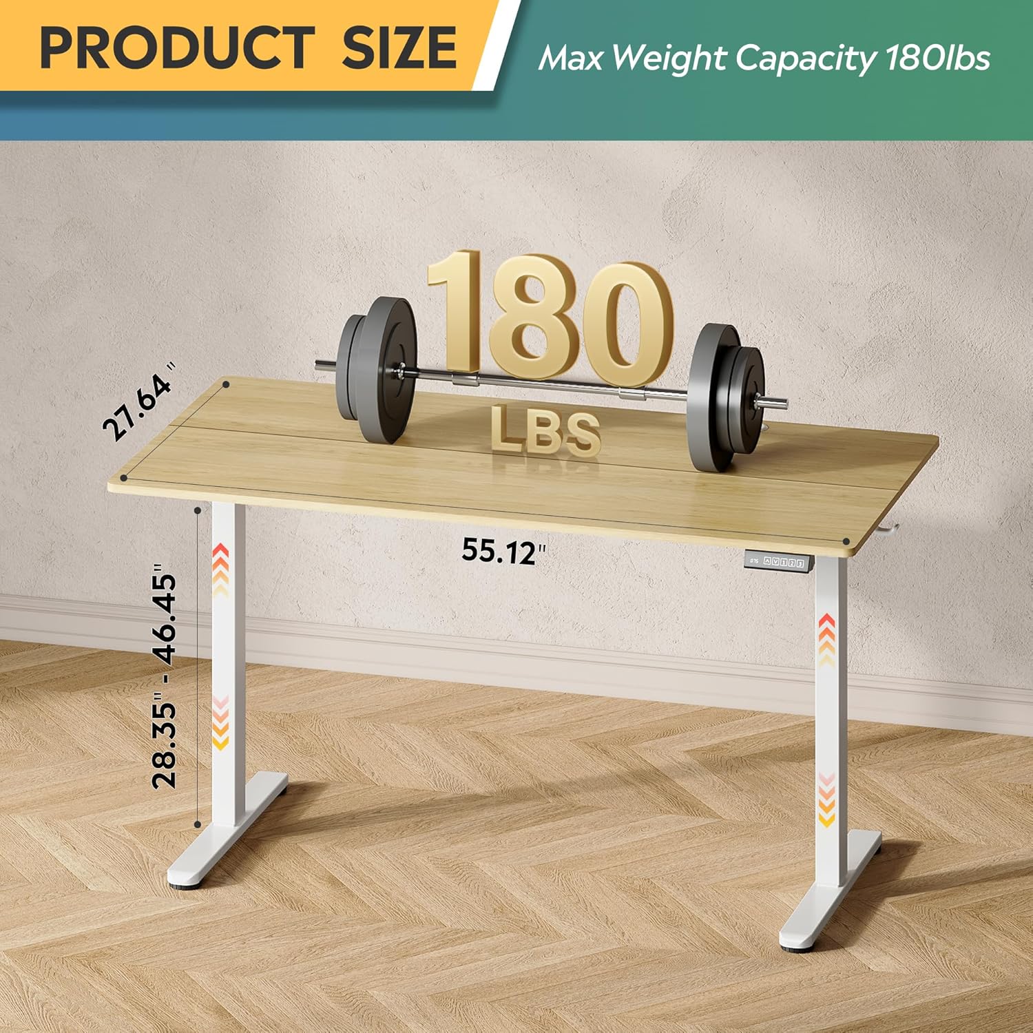 • 【Spacious 55 x 28 Desktop】The size of 55"W x 28"D surface (40% larger than standard 48x24" desks) fits triple 27-inch monitors + full-size keyboard with ample room for notebooks, speakers, and coffee. Engineered with ergonomic depth(28 Inch) to prevent hunching – perfect for architects reviewing blueprints, coders multi-tasking across screens, or creatives spreading out materials.
