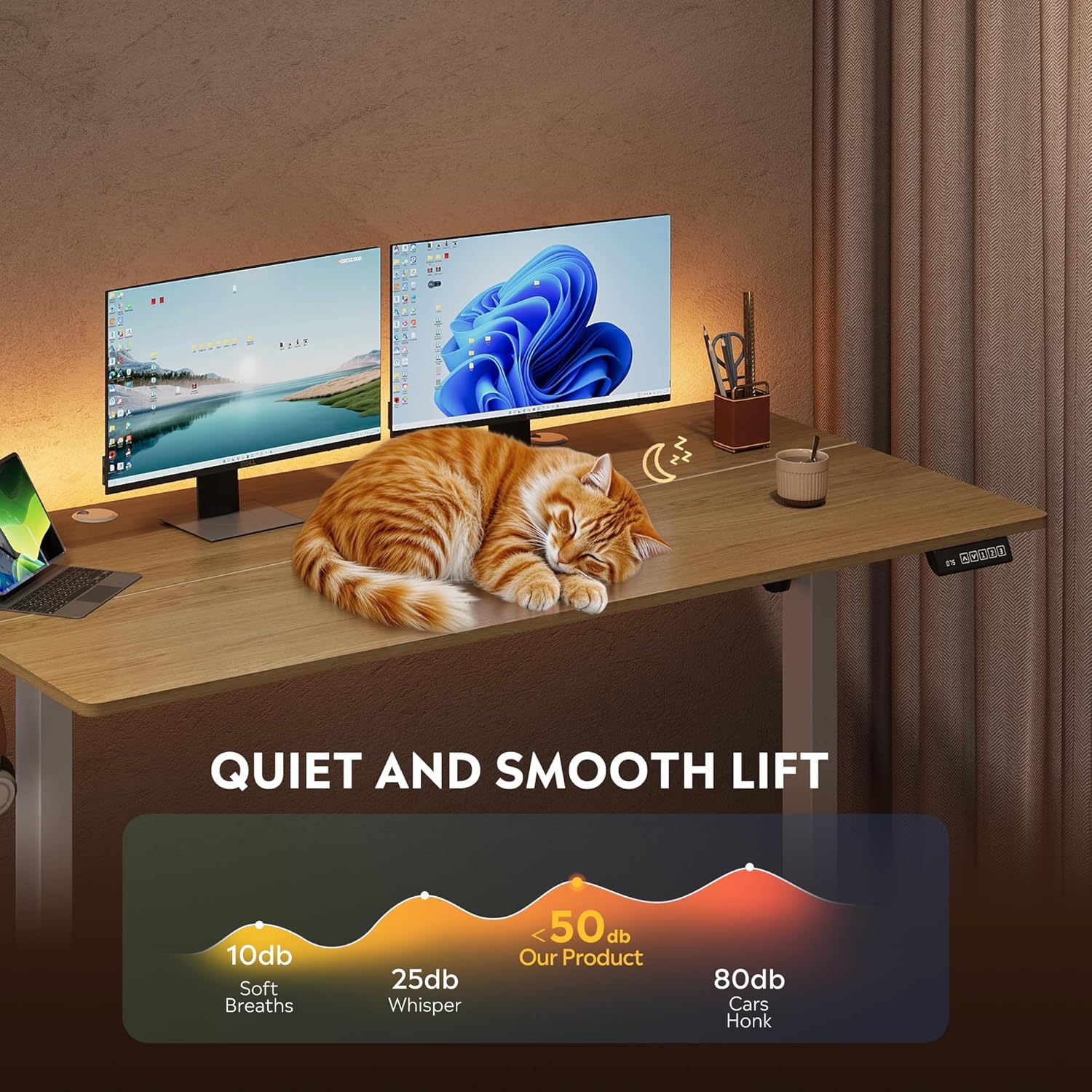 • 【Rock-Solid Stability Electric Standing Desk】Heavy-duty solid steel frame with aerospace-grade connectors passes rigorous 100,000-cycle durability test. Engineered to eliminate wobble even at full height, providing a vibration-free workspace for precision tasks. Outperforms standard desks with reinforced crossbars and industrial-grade stability technology.
