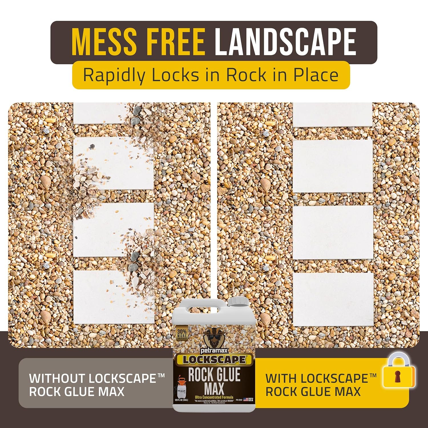 Lockscape Sticky Rock or Sticky Mulch Glue for Landscaping with Sprayer 1 Gallon, Max Rock Glue for Landscape & PetraTools HD101 Bundle, Lockdown Gravel or Mulch for Landscaping Hold (Stone Max)