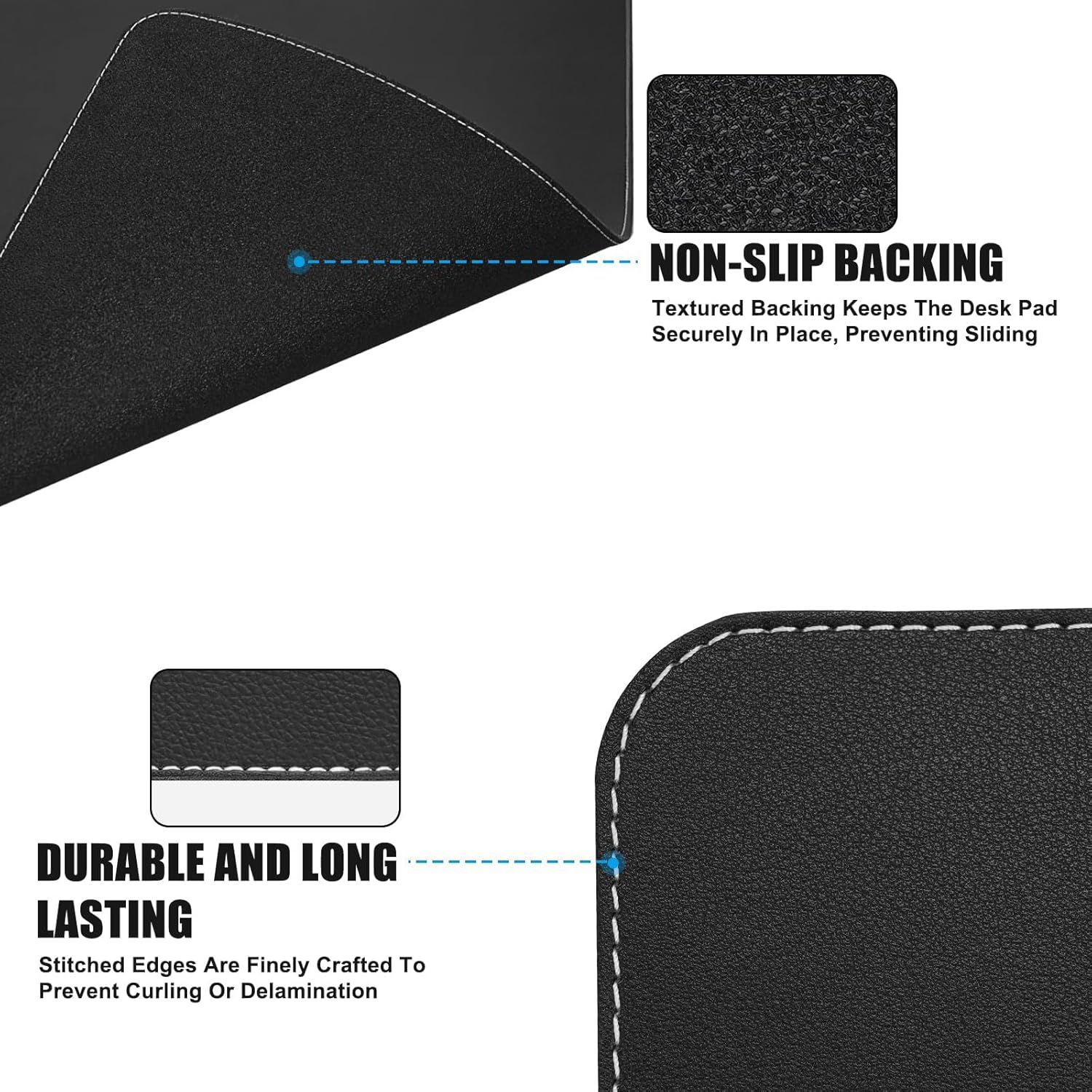 • PREMIUM MATERIAL:Made from premium PU leather, this mouse mat provides a Optimized micro-textured surface for mouse gliding smooth and precision. Comfortable surface of desk pad, ideal for writing, typing, or gaming