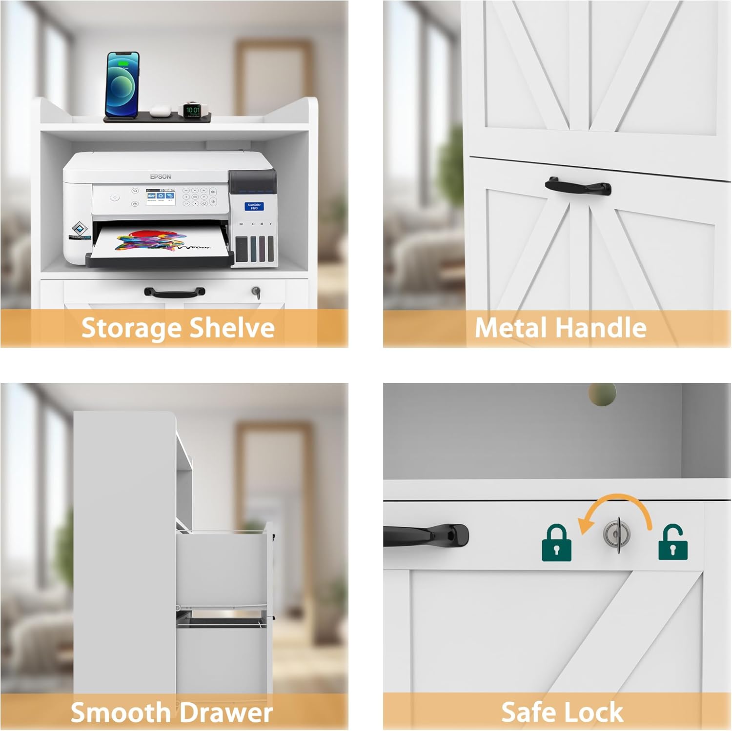 • 【Large storage cabinet】Dimensions: 24''L*15.6''W*40''H, with 2 large wooden drawers, 4 wheels, 1 open storage shelf & 1 wooden desktop which weight capacity of 150 lbs. You can also use it as a printer stand to save space. The file cabinet with lock provides added privacy and security for your personal items.