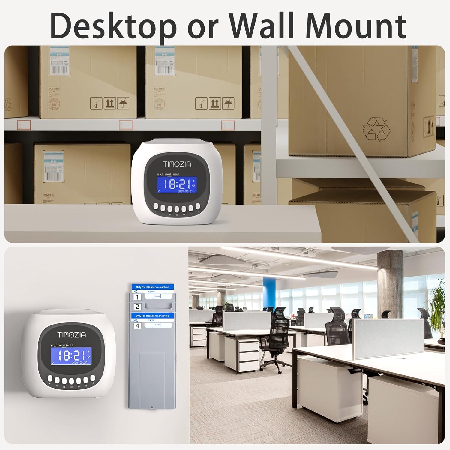• ๐—˜๐—”๐—ฆ๐—ฌ ๐—ง๐—ข ๐—จ๐—ฆ๐—˜: This attendance machine features auto-time calibration, ensuring accurate timekeeping as soon as itโ€™s powered on. The large 4" LED screen offers clear time visibility and other important information. Each attendance card can be identified on both sides, with 15 days of tracking space on each side. Once you fill up 15 days, simply flip the card to continue tracking from day 16, ensuring continuous and efficient time management.